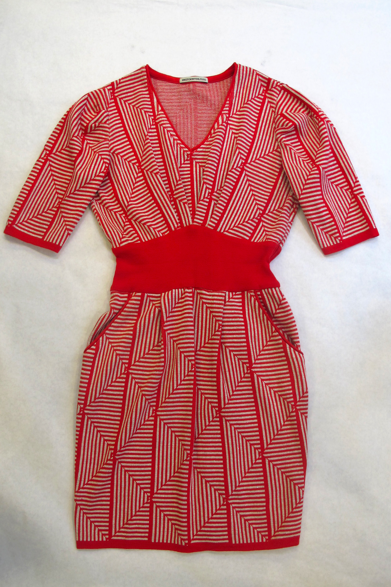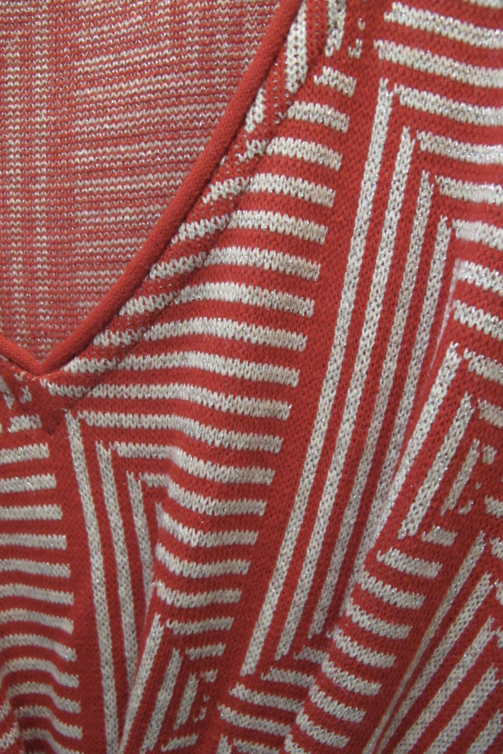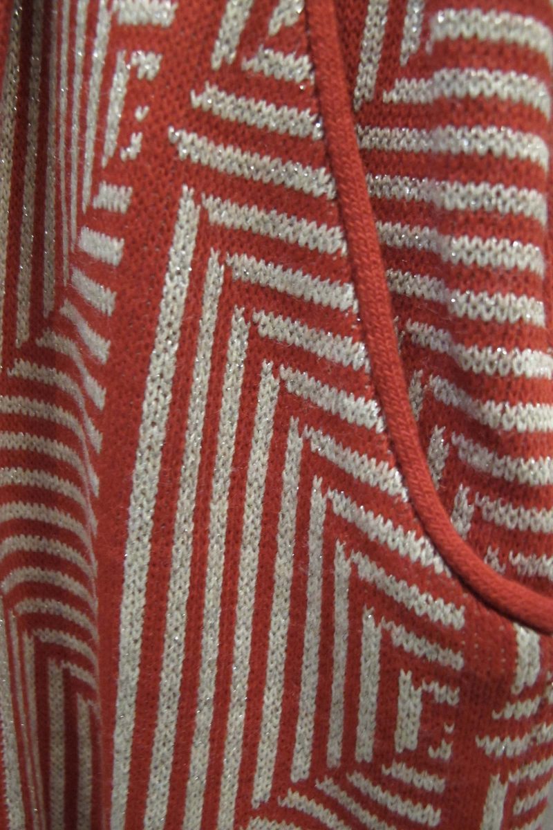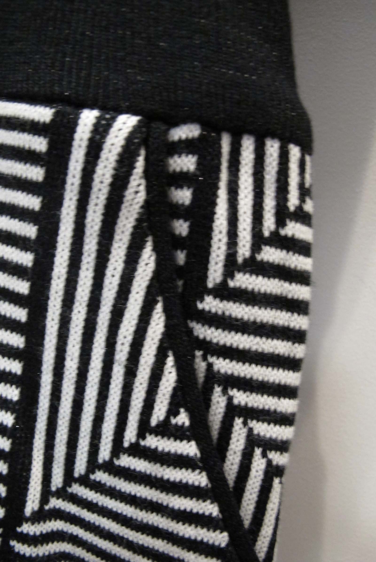 Robe en maille Rima à motif géométrique et détails lamés. La taille est cintrée avec une bande côtelée et la jupe a des poches latérales.