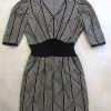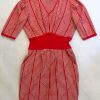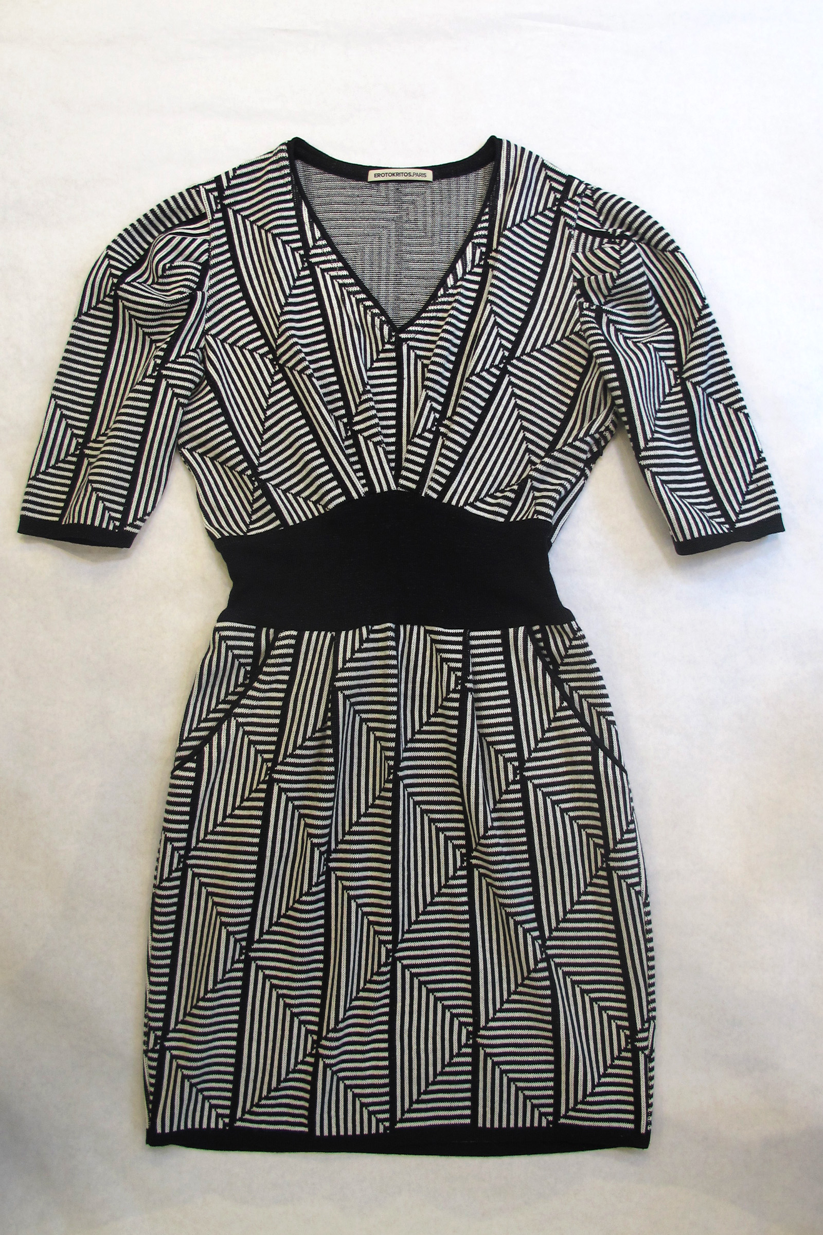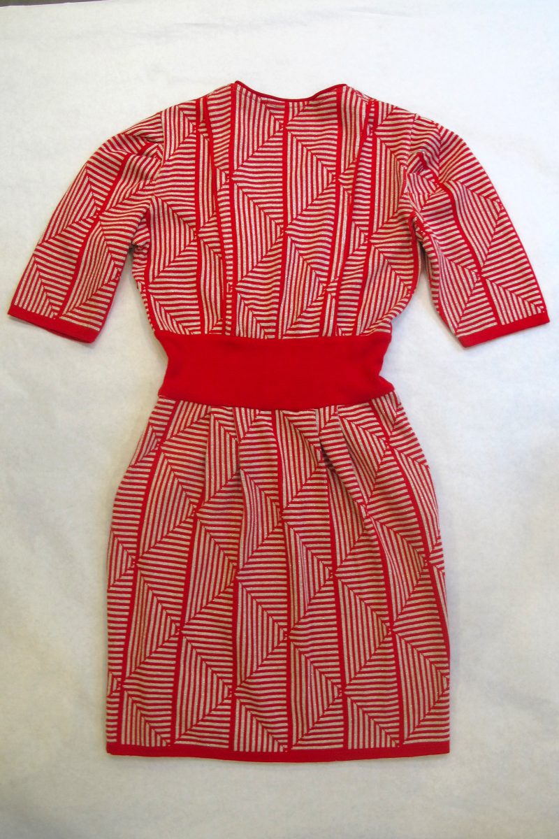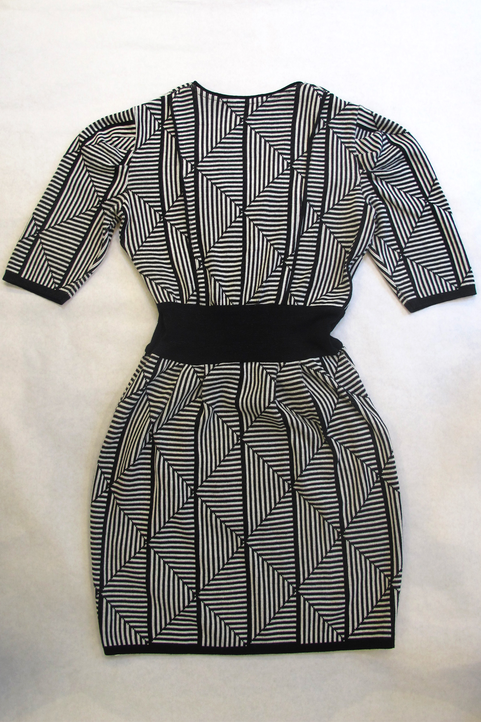Robe en maille Rima à motif géométrique et détails lamés. La taille est cintrée avec une bande côtelée et la jupe a des poches latérales.