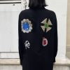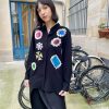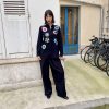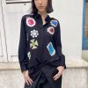 An oversized silk-blend shirt with a fluid drape and hidden button placket. Its crisp base is adorned with abstract prints of oversized jewels — rubies, emeralds, sapphires framed by diamonds — evoking the glamour of vintage haute joaillerie with a playful, modern twist. Effortless, ironic, and unmistakably Parisian.