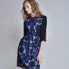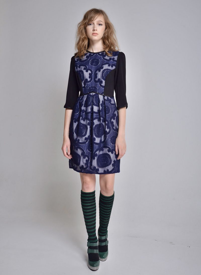 Color block lace and crepe dress with Lurex details. entirely lined with stripe cotton.