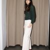 Straight wide leg pants in pale blush twill canvas, two front side pockets and a back slit pocket.