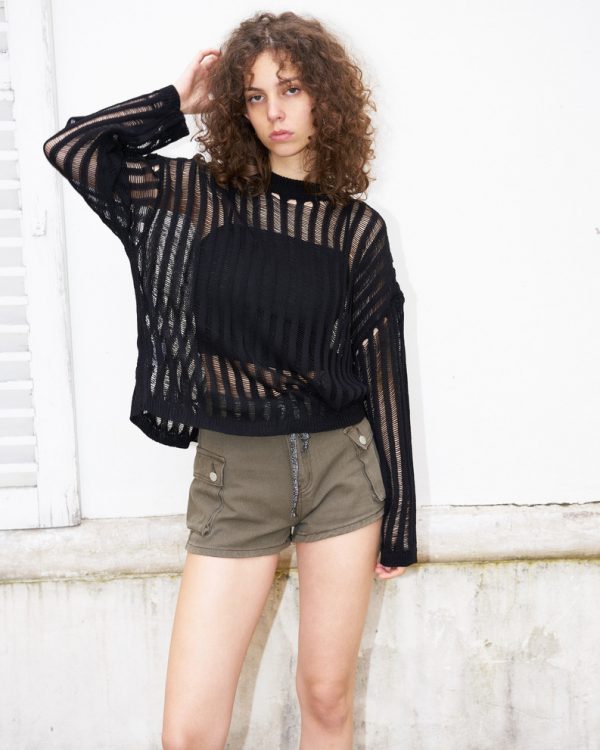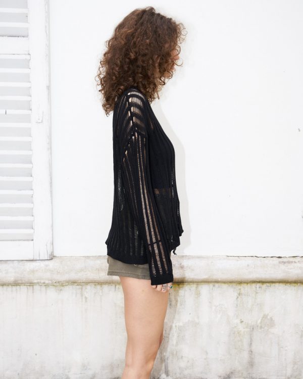 Fluid and sheer knitted oversize sweater, it comes with a stretch camisole top.