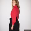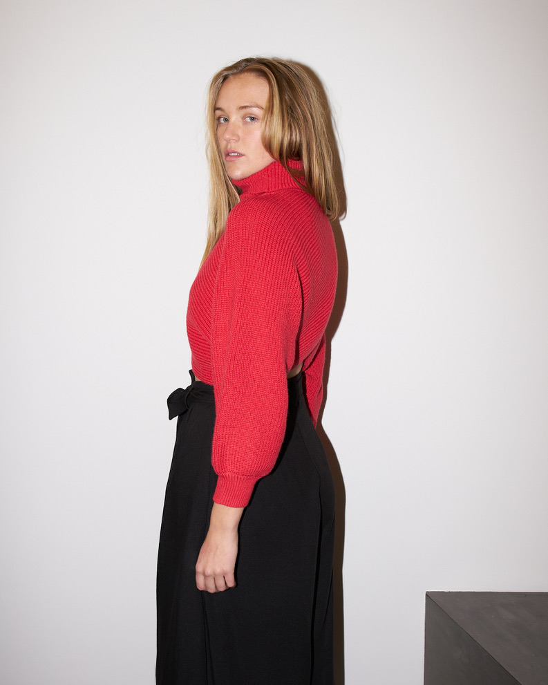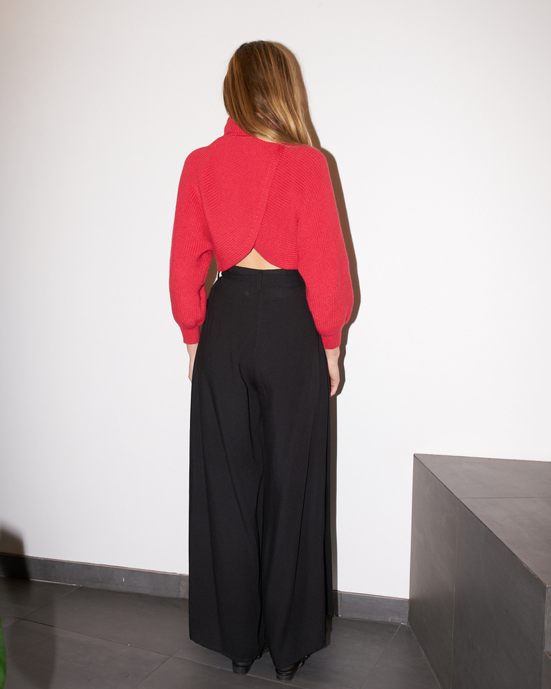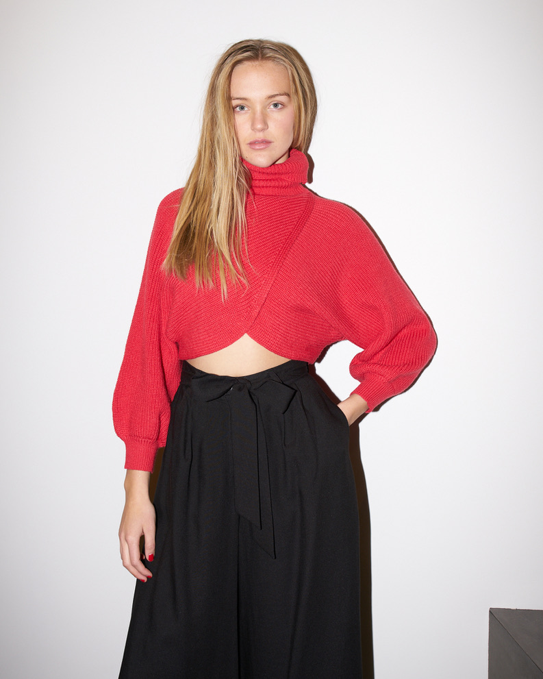 Ava – Crop Knit Petal Turtle Neck Sweater – Red