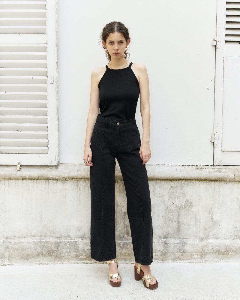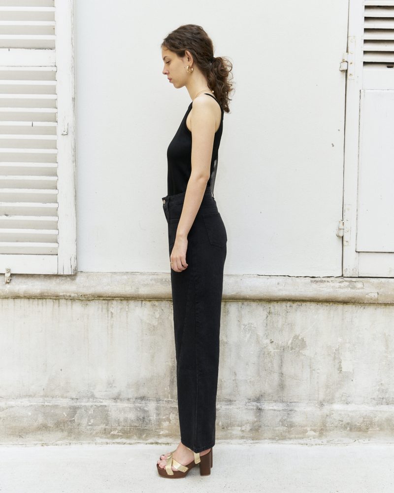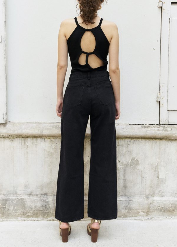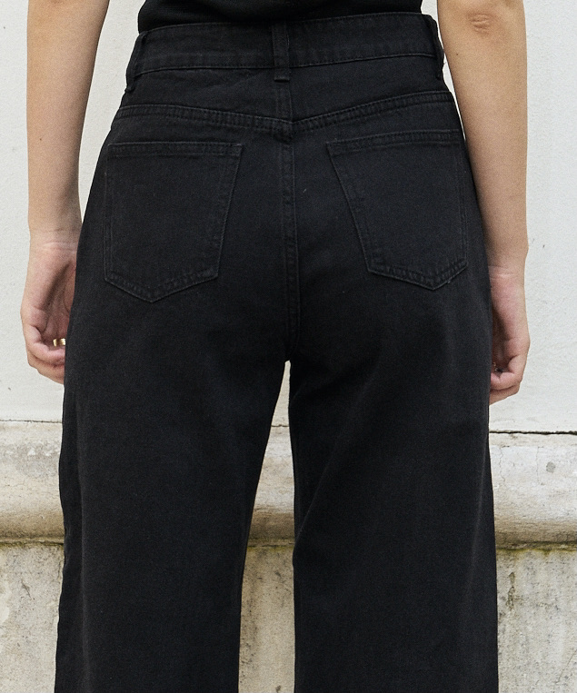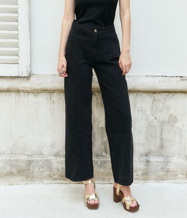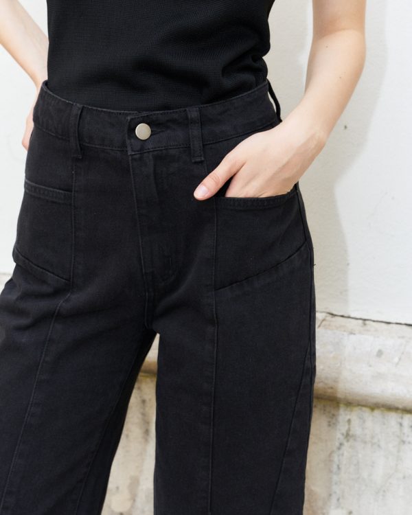 Beebee-Diamond Cut Wide Leg Jeans/Black