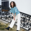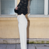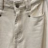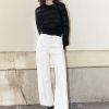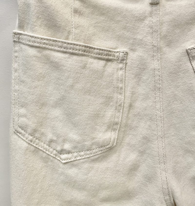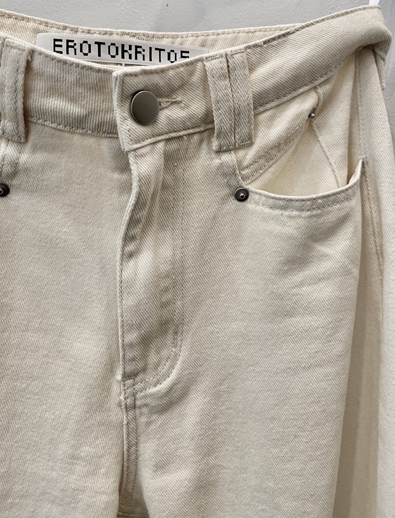 Soft wide leg jeans in ivory denim, they feature double belt loops and diagonal pocket seam details.