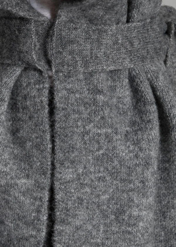Soft boiled wool turtle neck vest with stilted sides and belt. The large shoulders give a very modern dynamic silhouette. You can get playful and belt this style in many different ways.