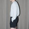 Straight cut tailored hot shorts in white cotton canvas. They have a front flap pocket, two side pockets and a slit back pocket.