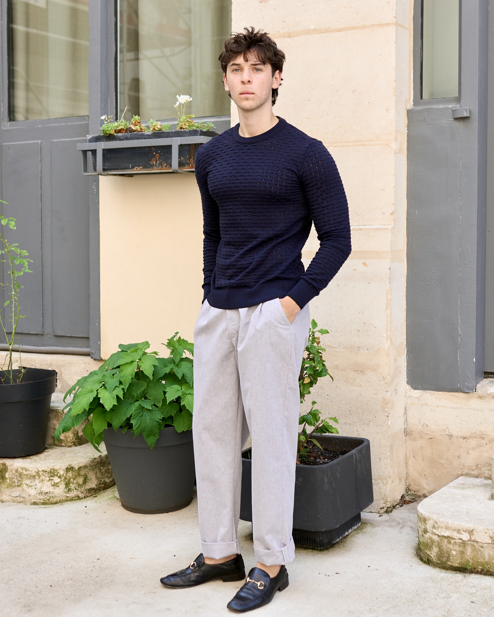 Bryce – Round neck Textured Knit Sweater – Dark Navy