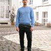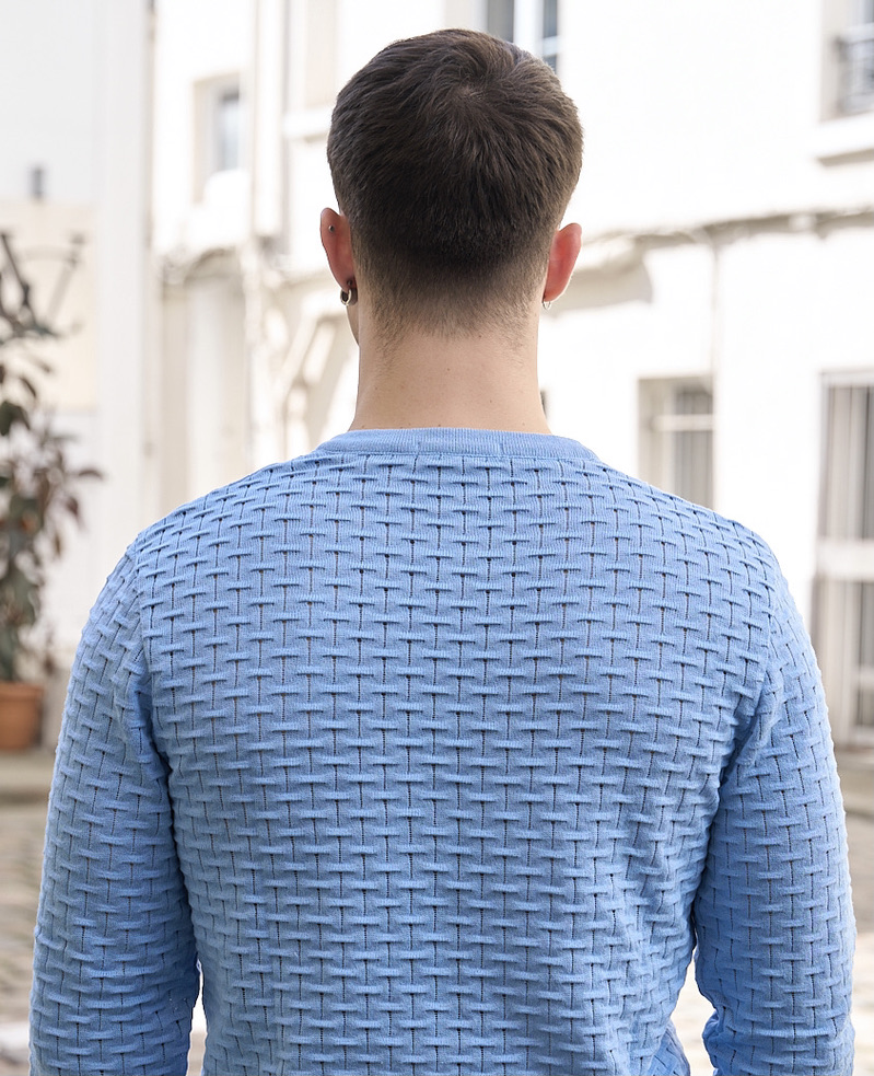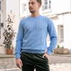 Bryce – Classic Fit Round Neck Basket Weave Knit Sweater – Light Blue