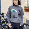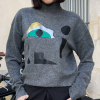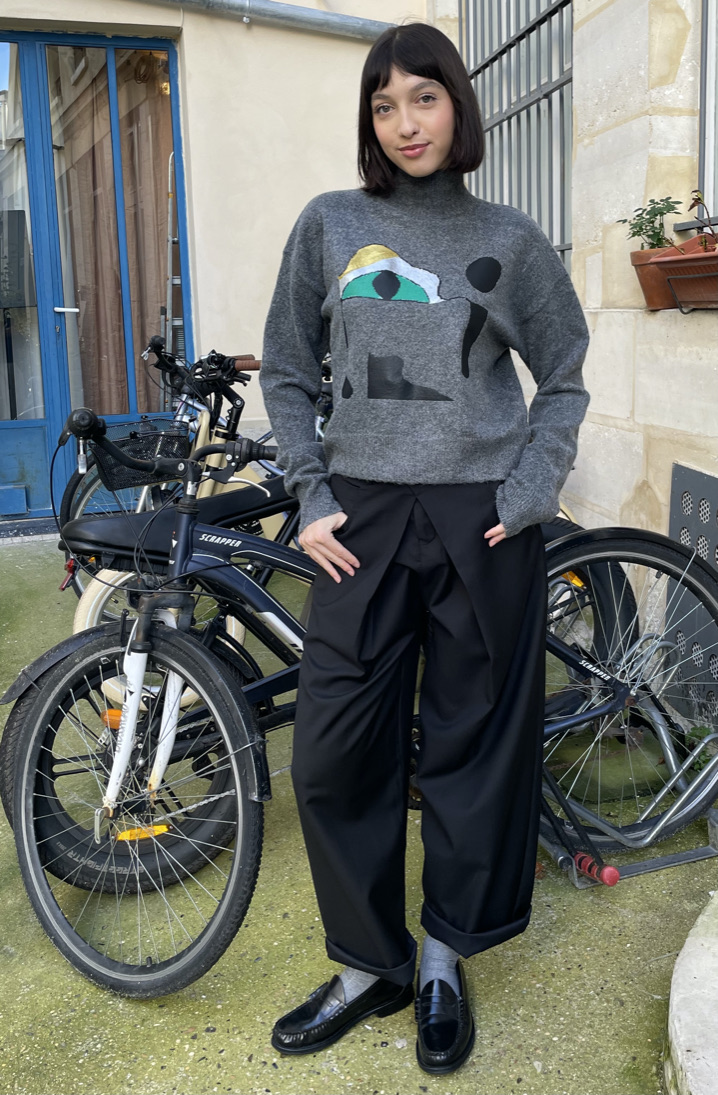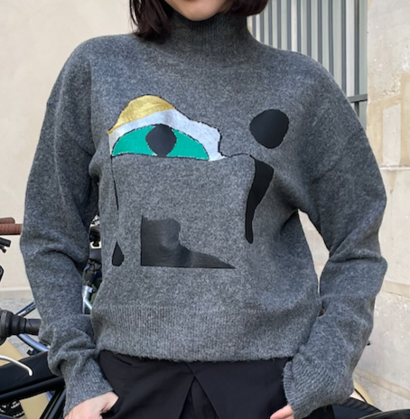 High-neck oversized sweater knitted in soft melange grey cashmere wool. The minimalist silhouette is disrupted beautifully by a bold surrealistic eye motif at the front, rendered in a style reminiscent of Salvador Dal۪̉s dreamlike universe.