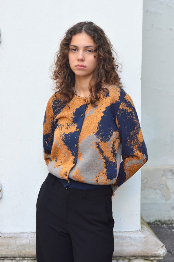 Polly-Abstract Pattern Knit Cardigan-Gold
