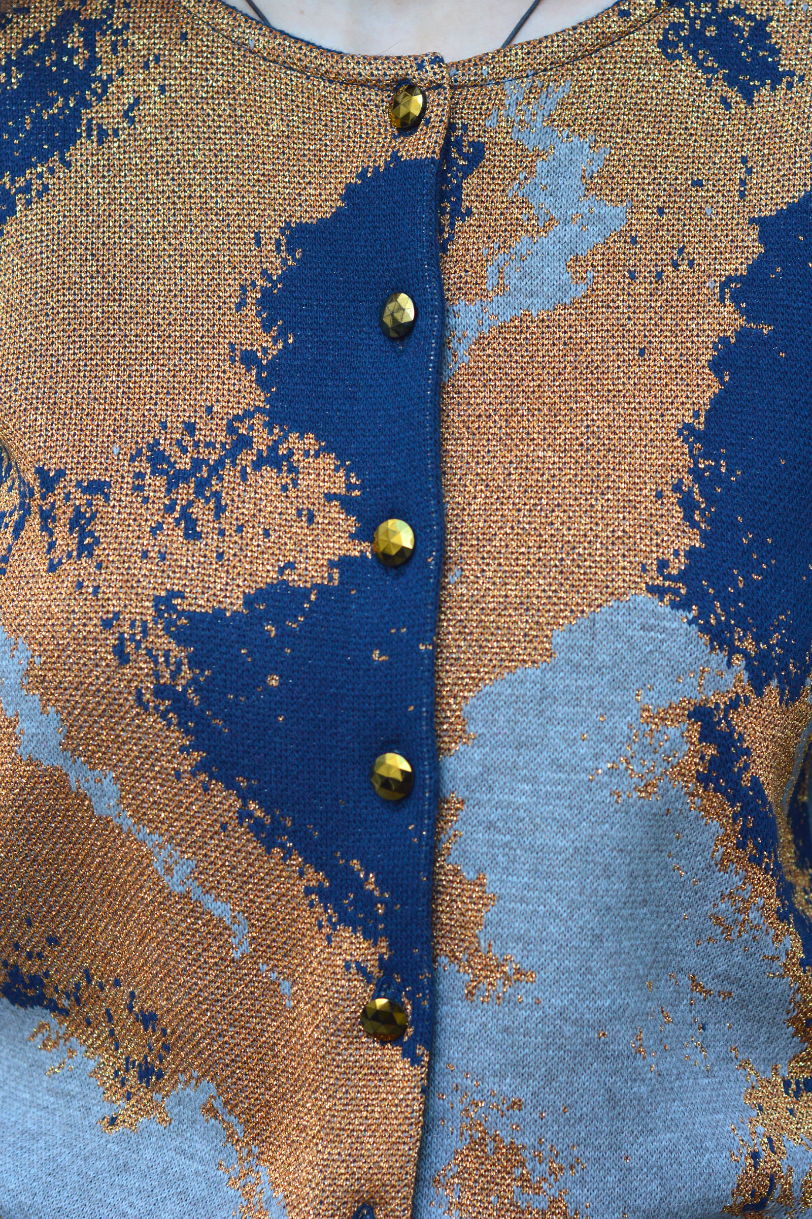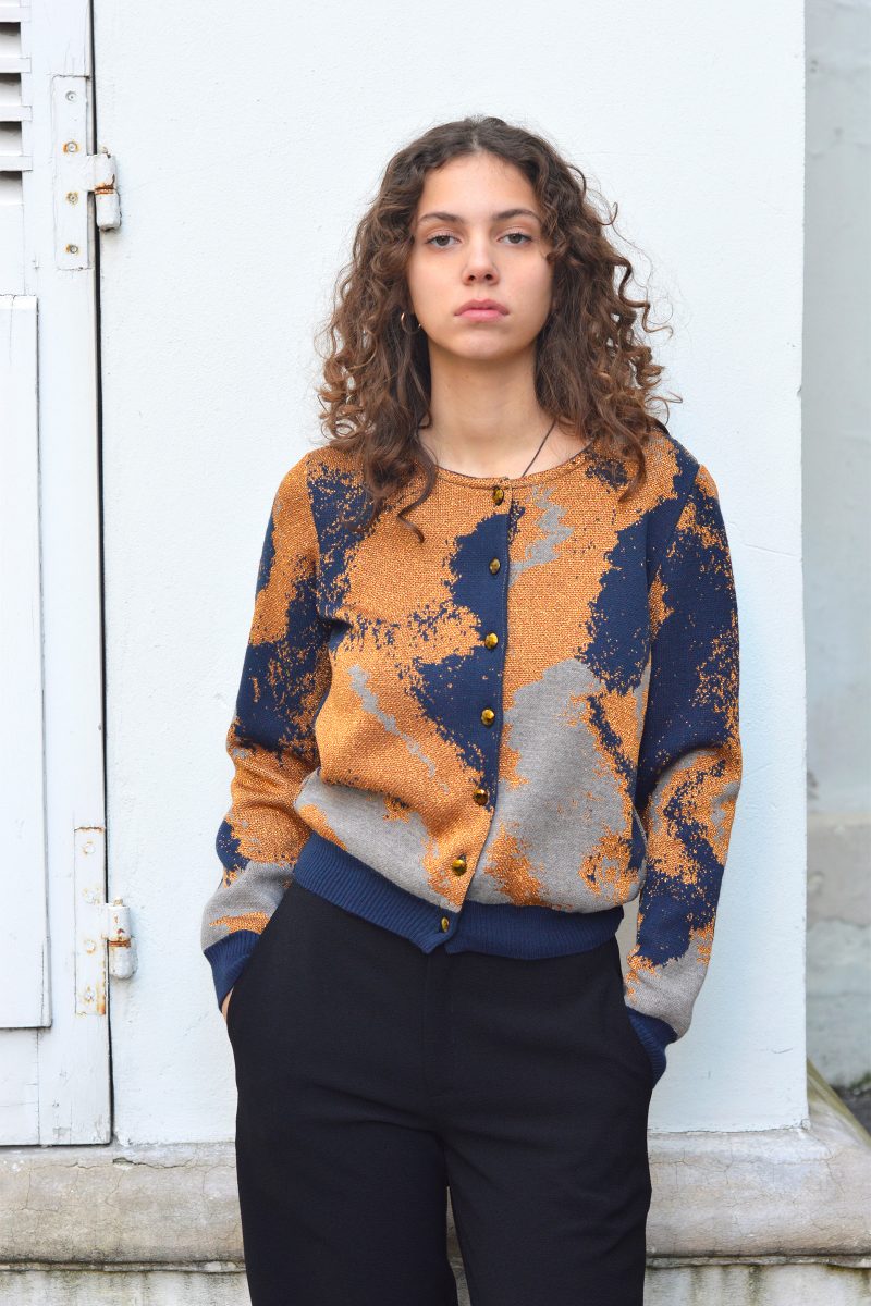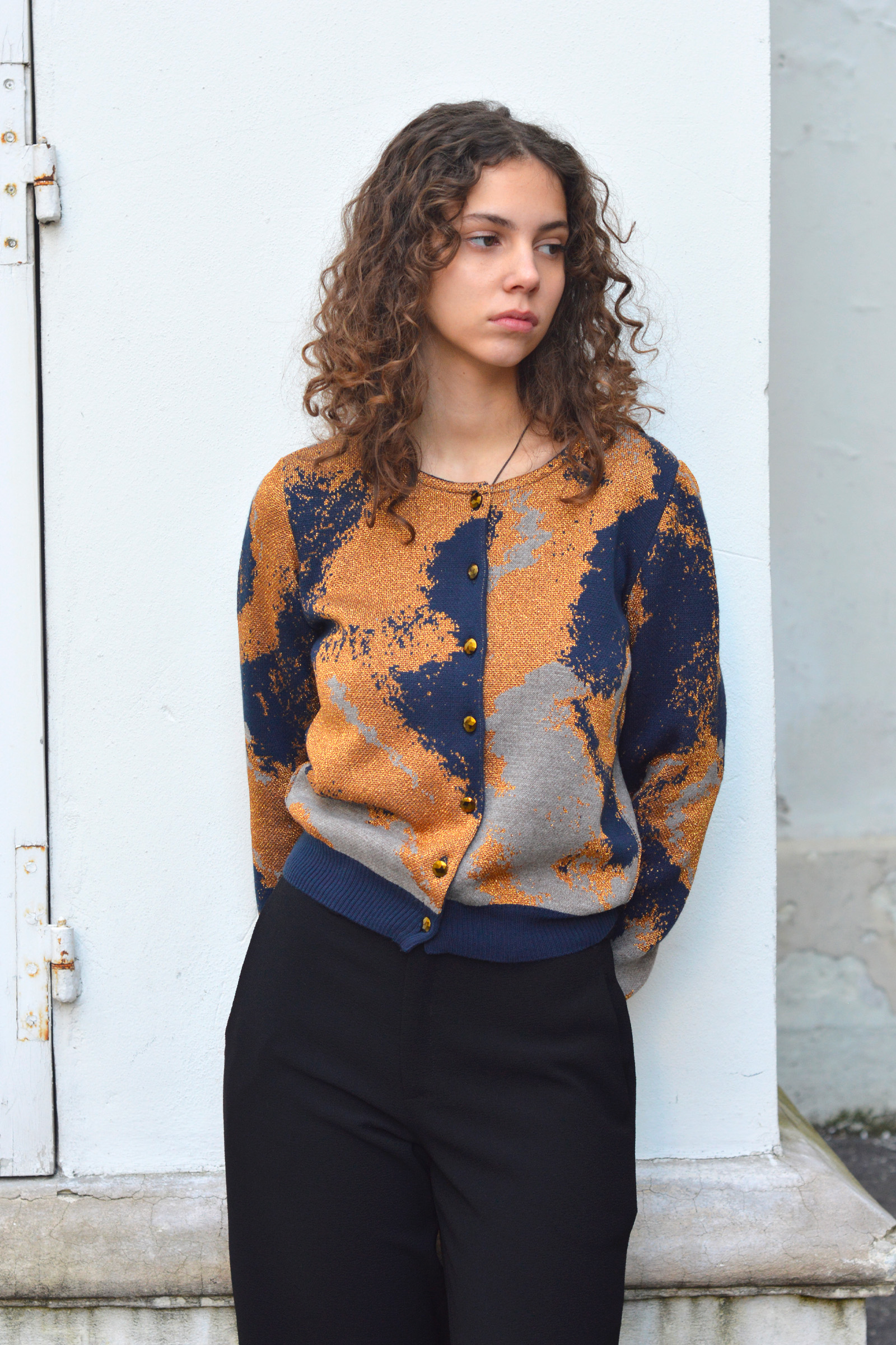 Textured knit cardigan with a marble effect, Lurex details and jewel glass buttons.