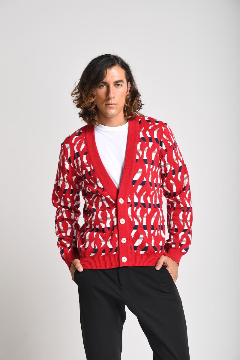 Cardigan Zoher M à motifs zèbre et bord-côtes larges.