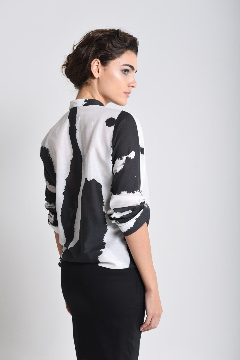 Chemise légère au motif abstrait et manches tombantes ajustable.