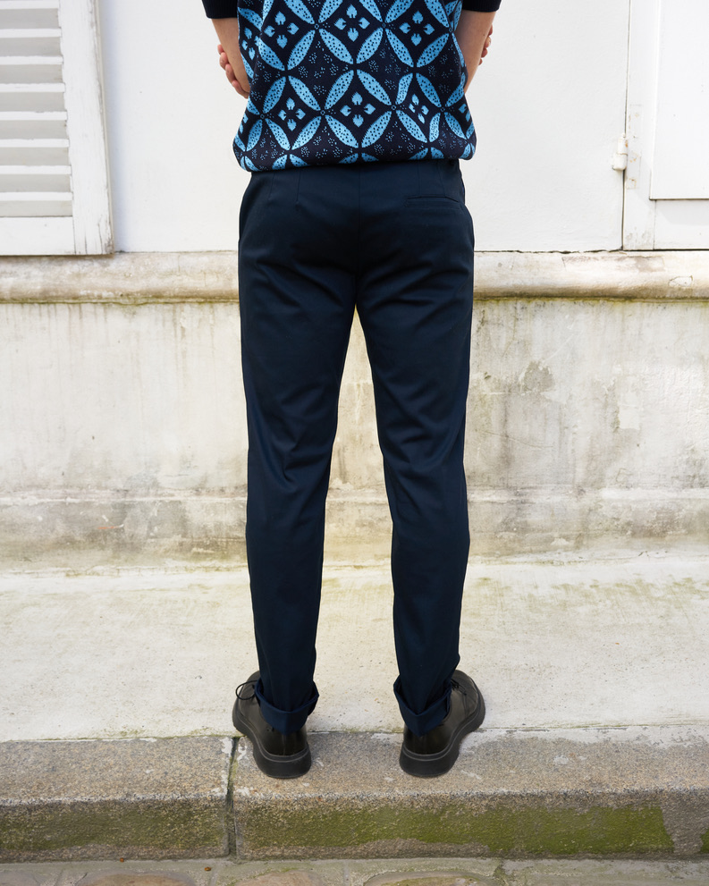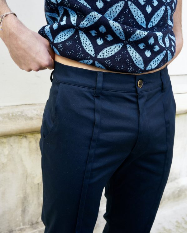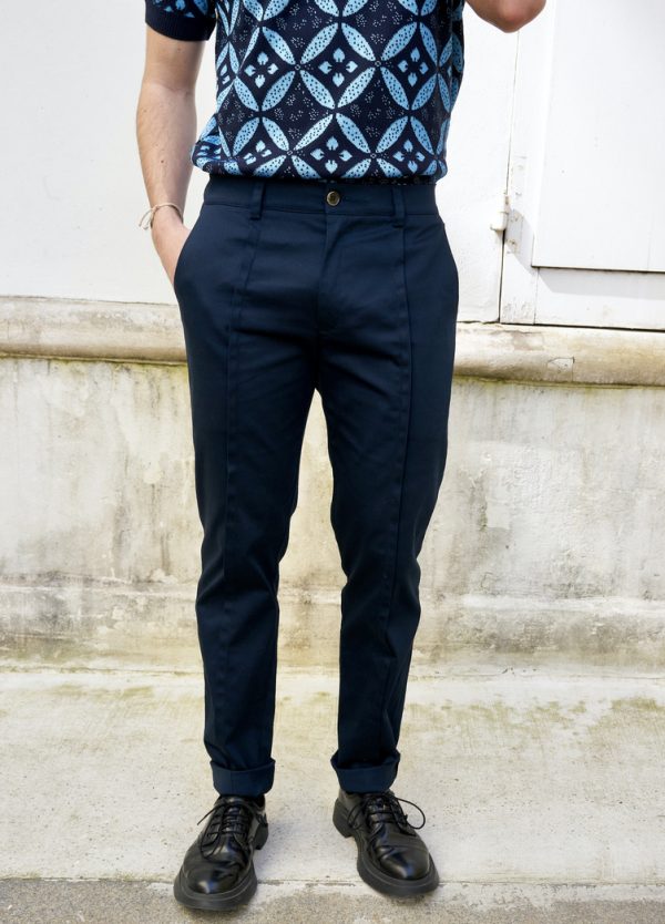 Straight leg tailored pants with a stitched middle pleat, inspired from 1960’s french classic cut.