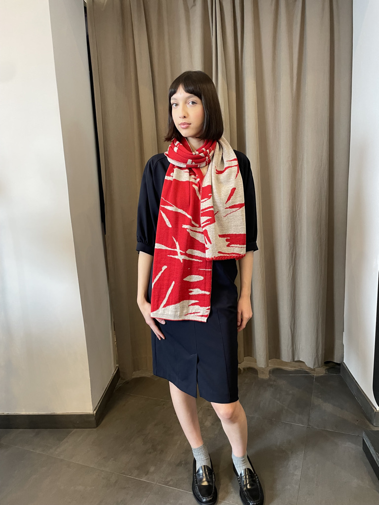 Dany – Warm Double-Face Knitted Scarf in Paintbrush Jacquard – Red
