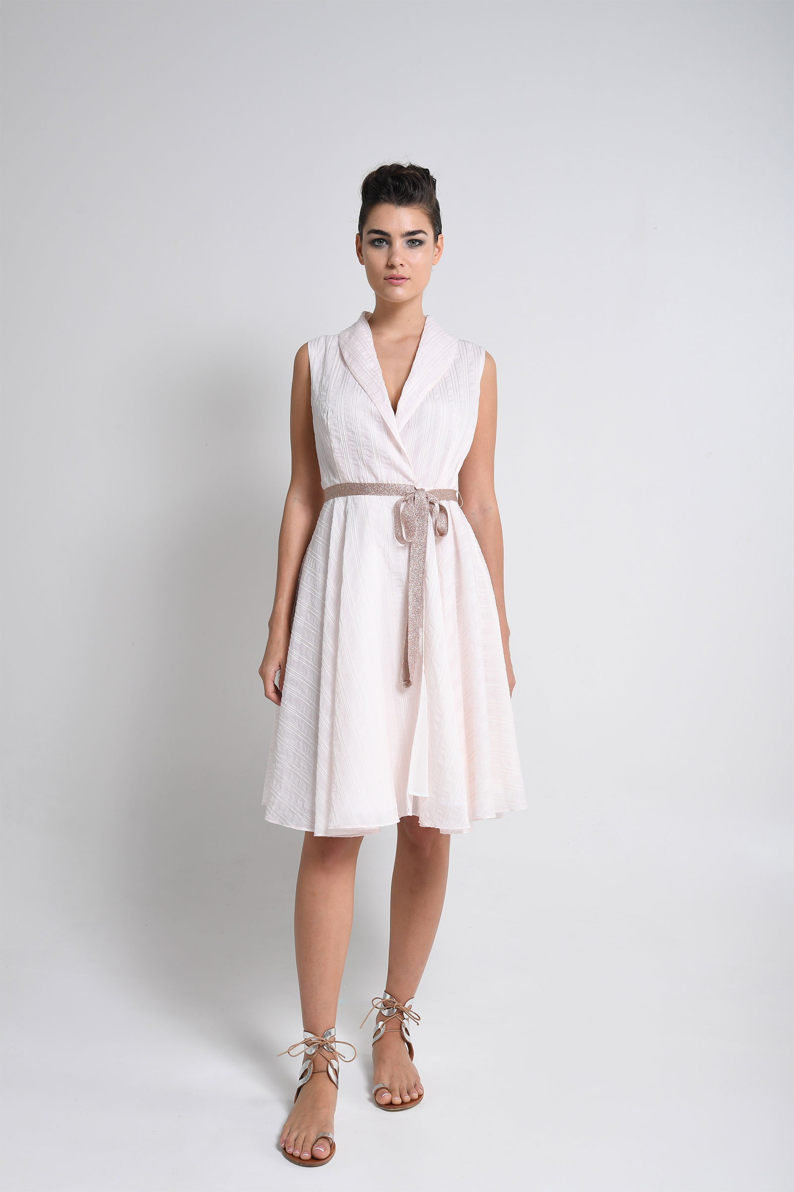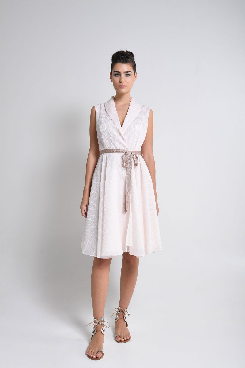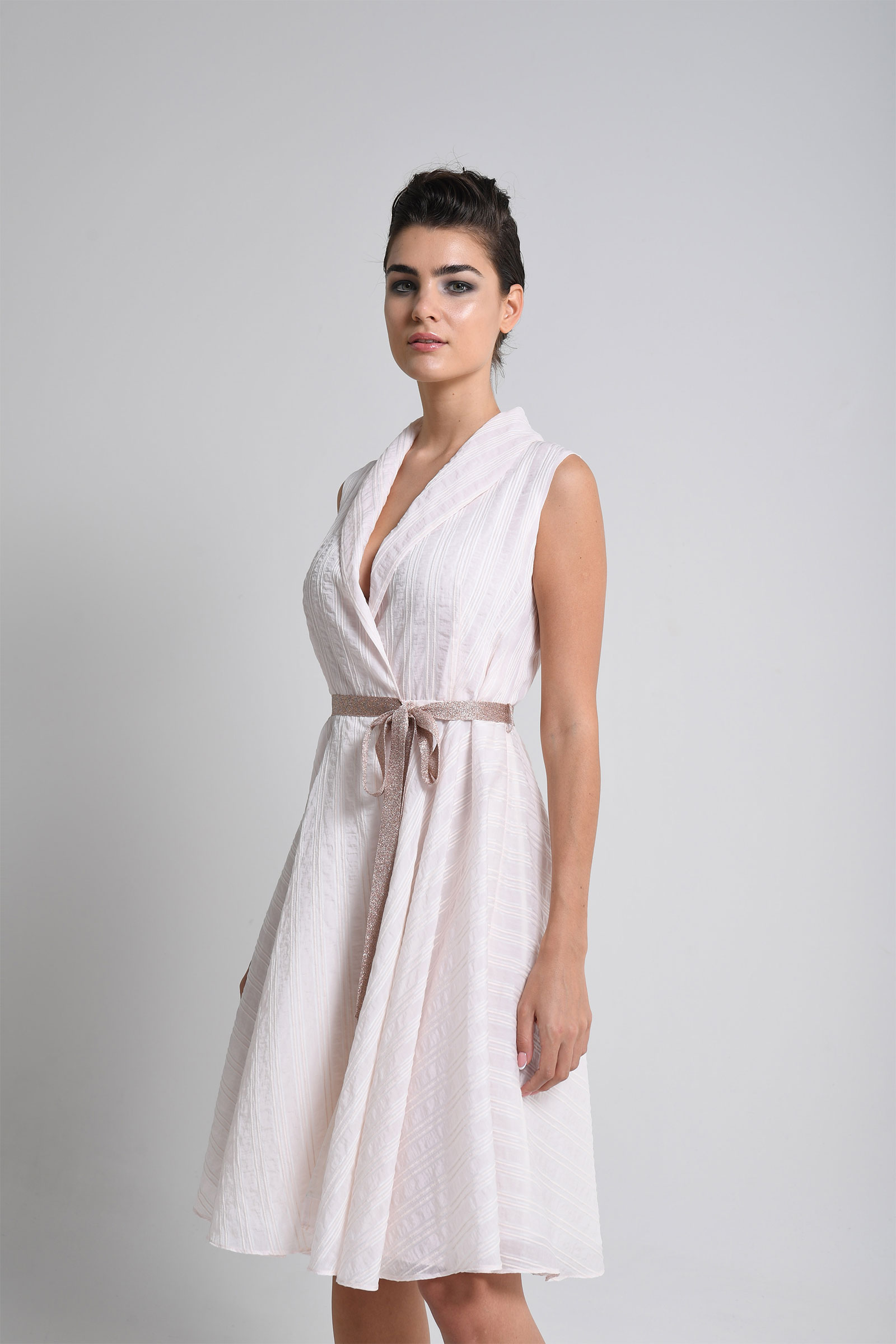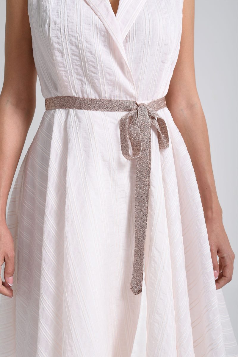 Robe portefeuille avec ceinture en lurex entièrement doublé.