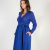 Midi length mixed fabric wrap dress; Top part in lace knit and skirt in crepe with pockets.