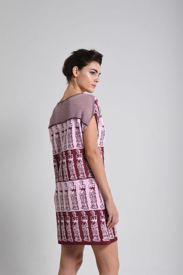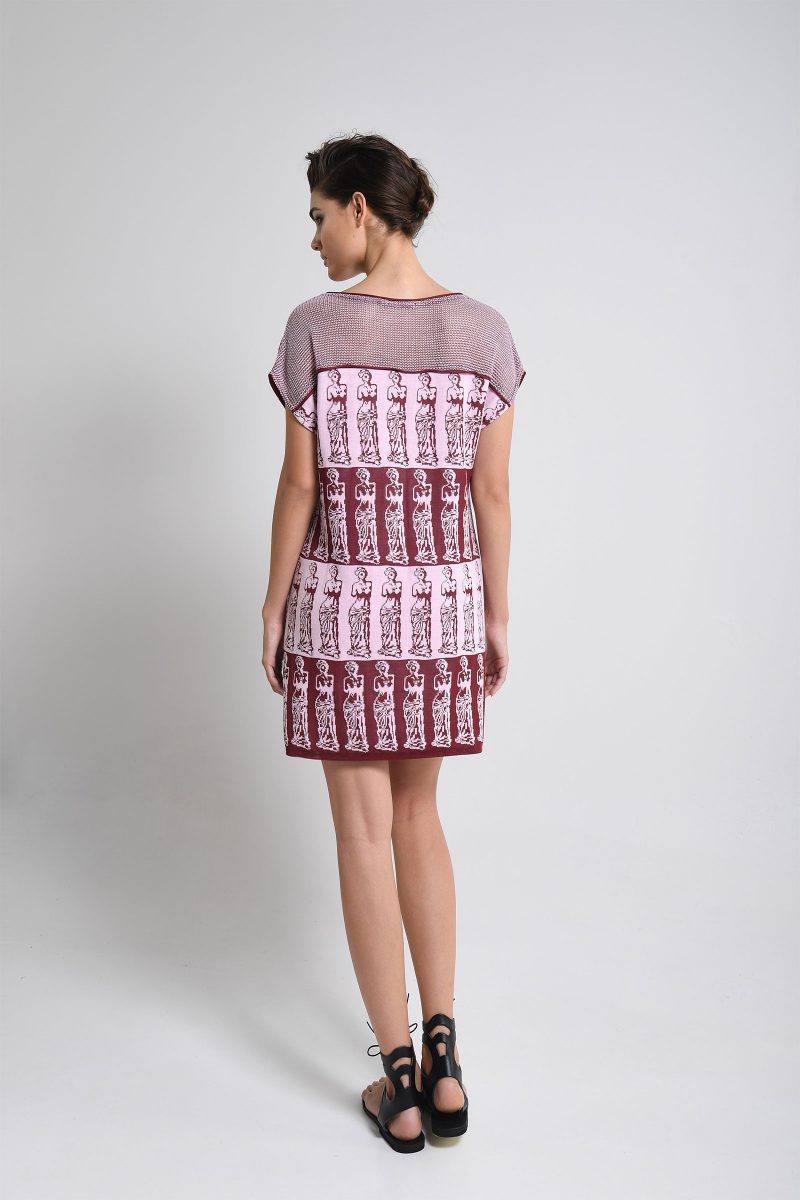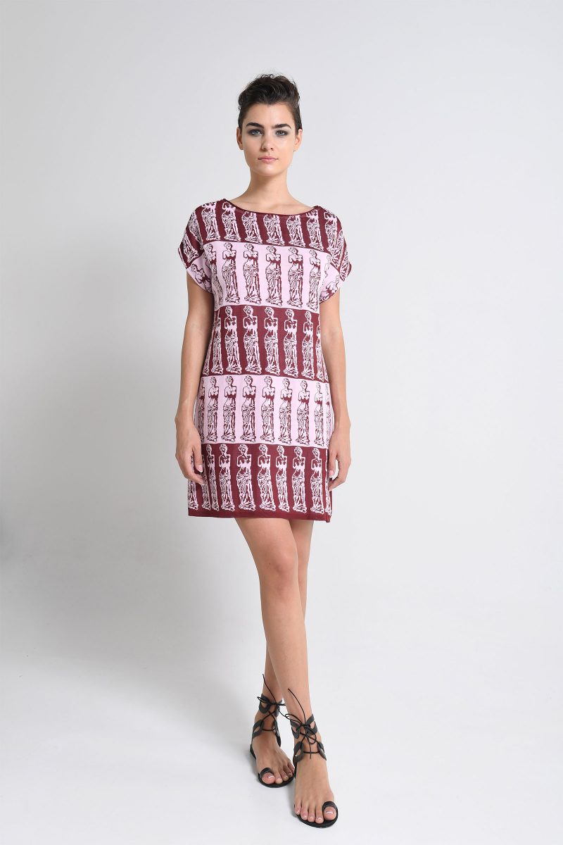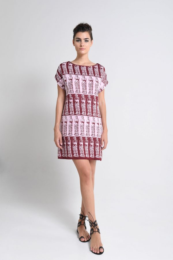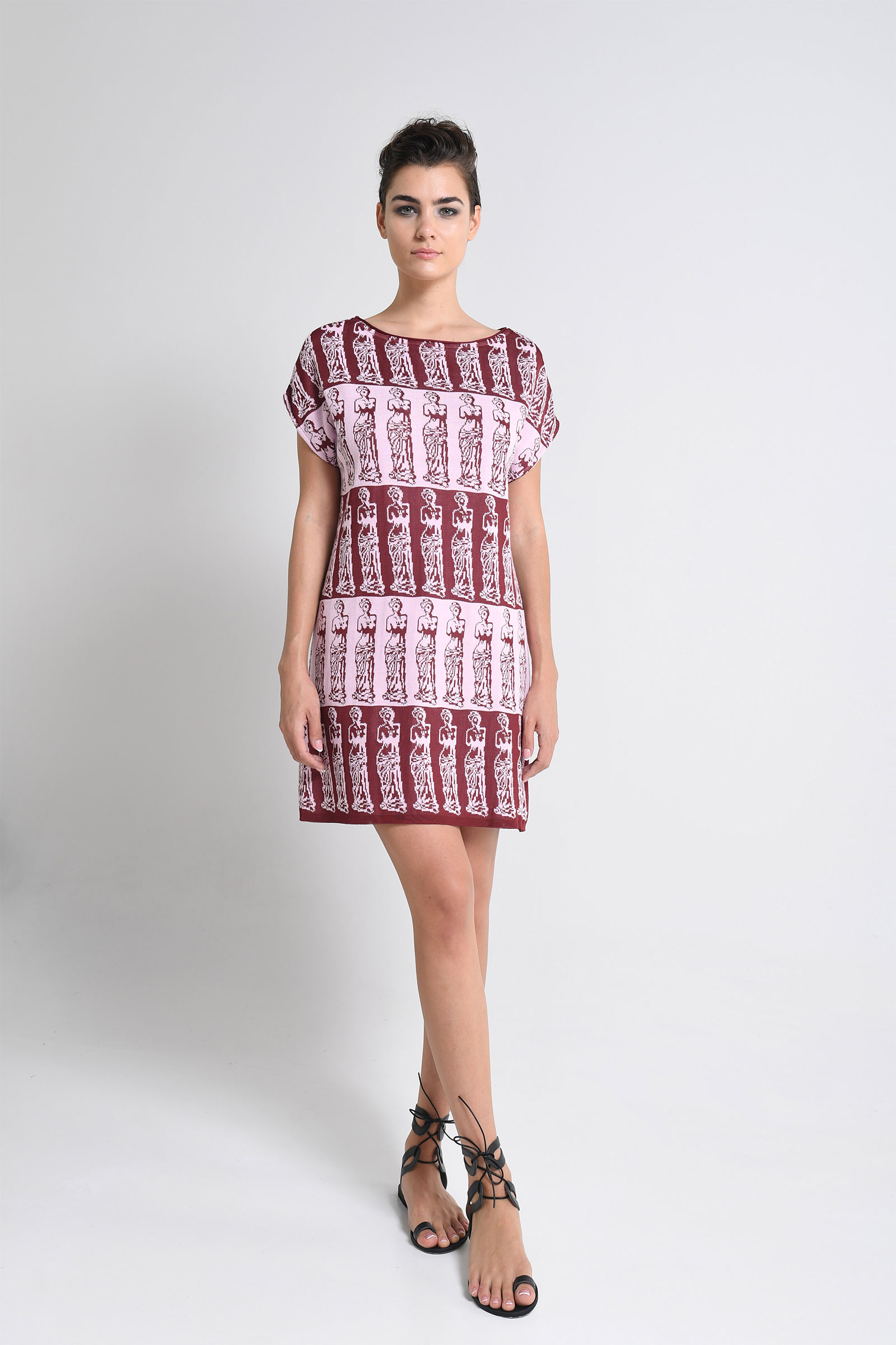 Short dress with aphrodite of milos pattern and cap sleeves.