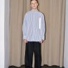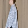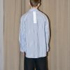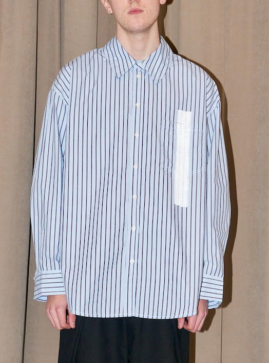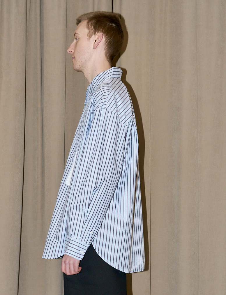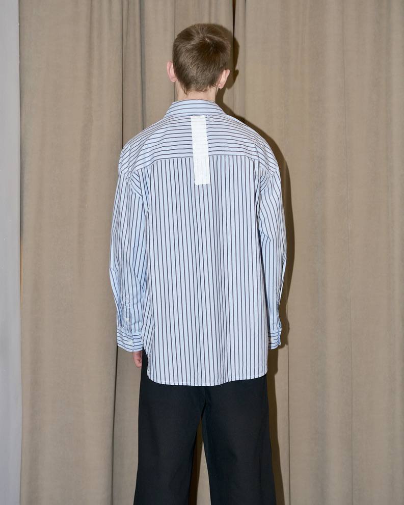 Oversized crisp cotton poplin stripe shirt with hand painted bands.