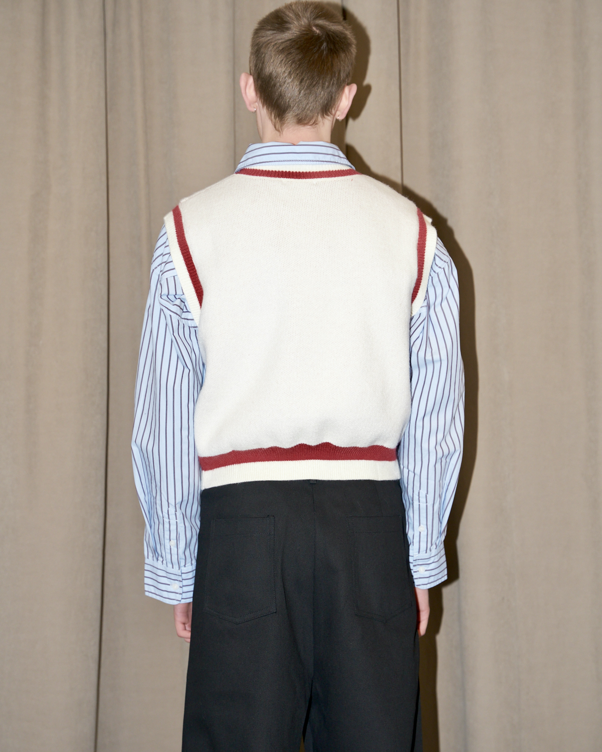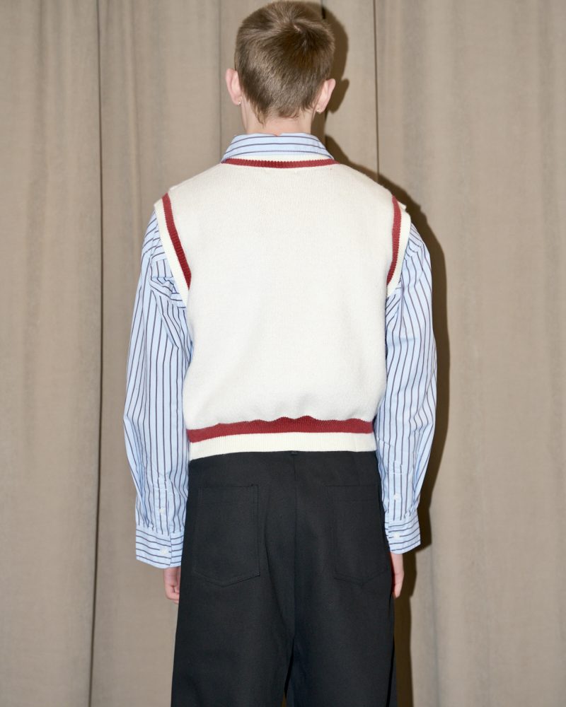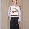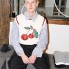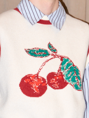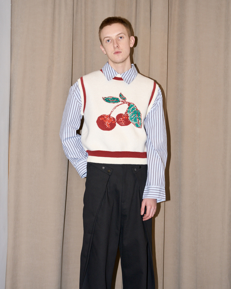 Luxurious knitted crop soft vest with cherry jacquard and hand painted details