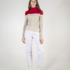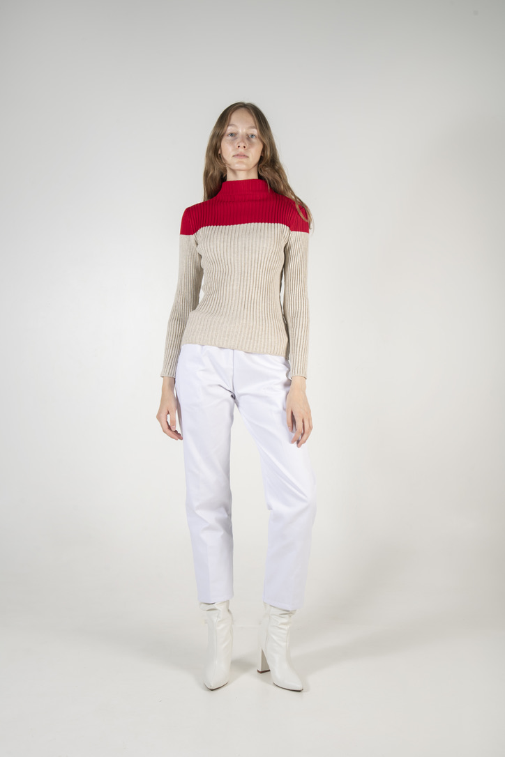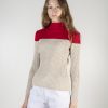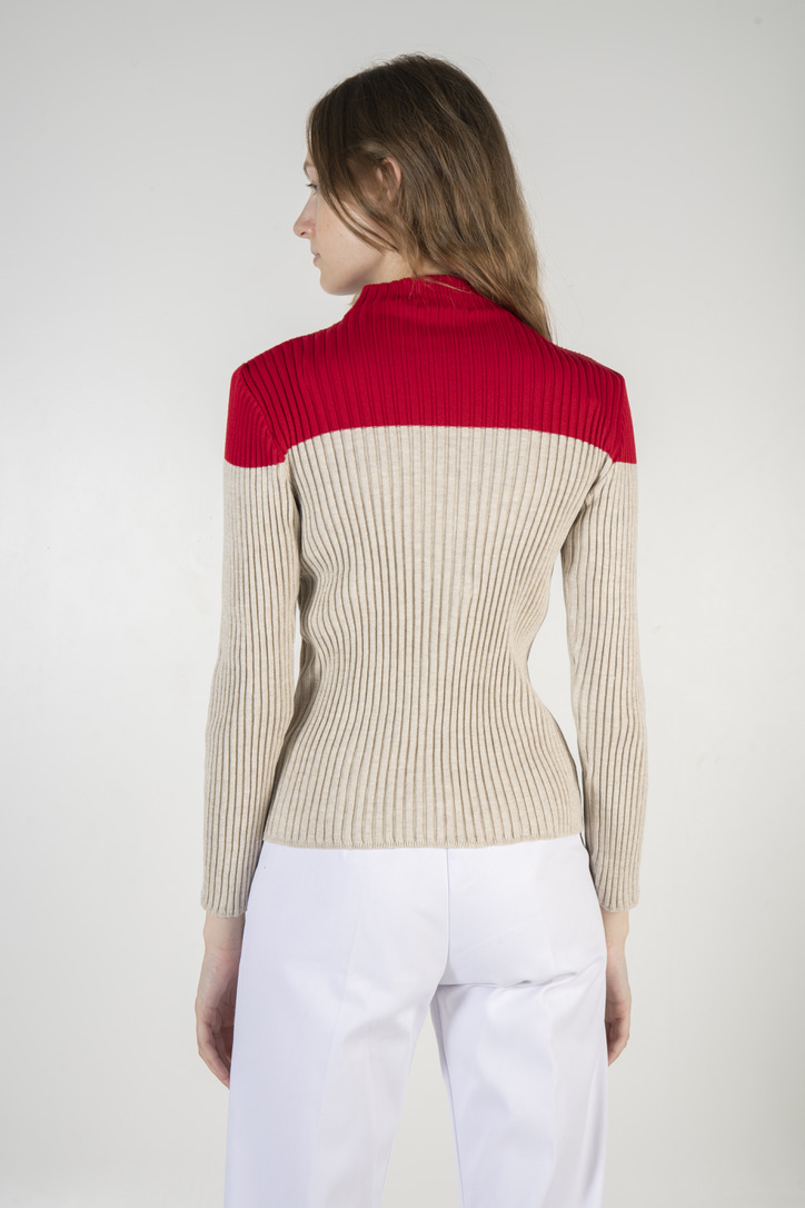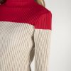 Color block crew neck rib knit sweater.