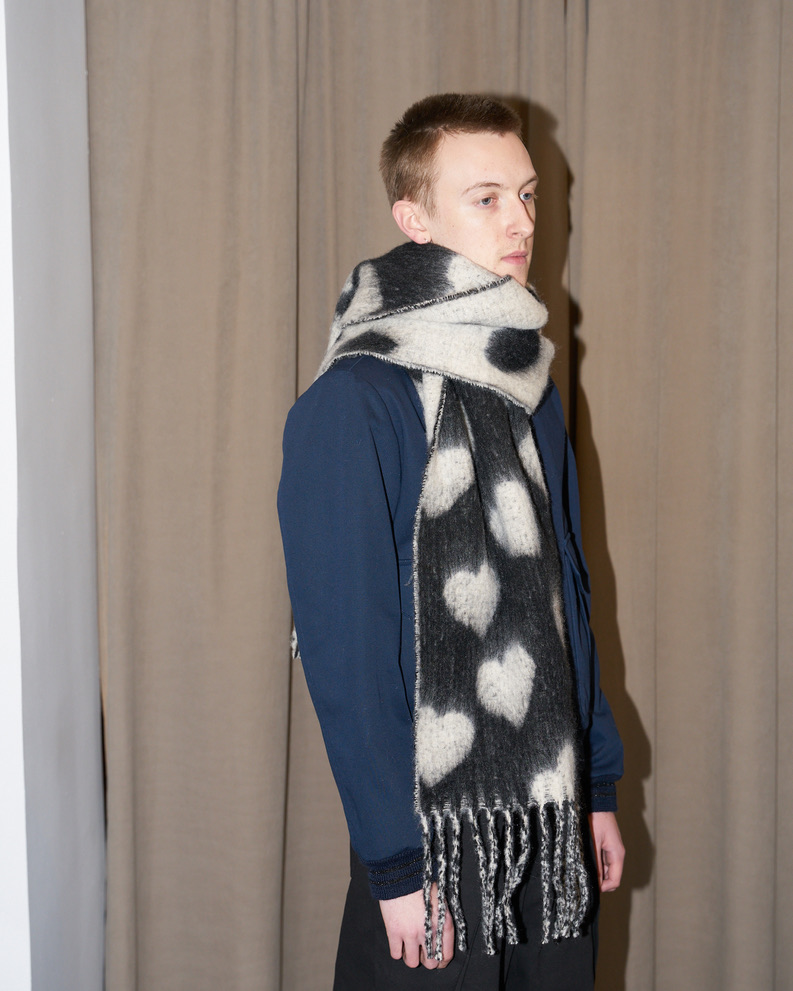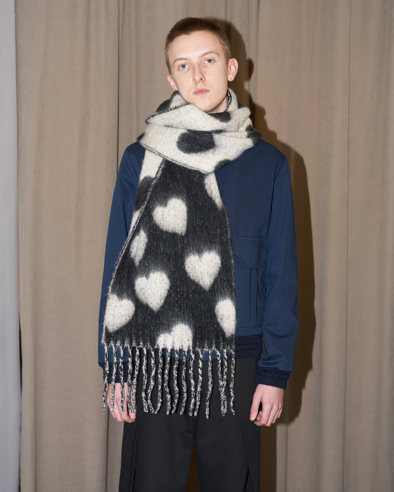 Large Fluffy heart scarf made from soft boiled wool in double side jacquard.