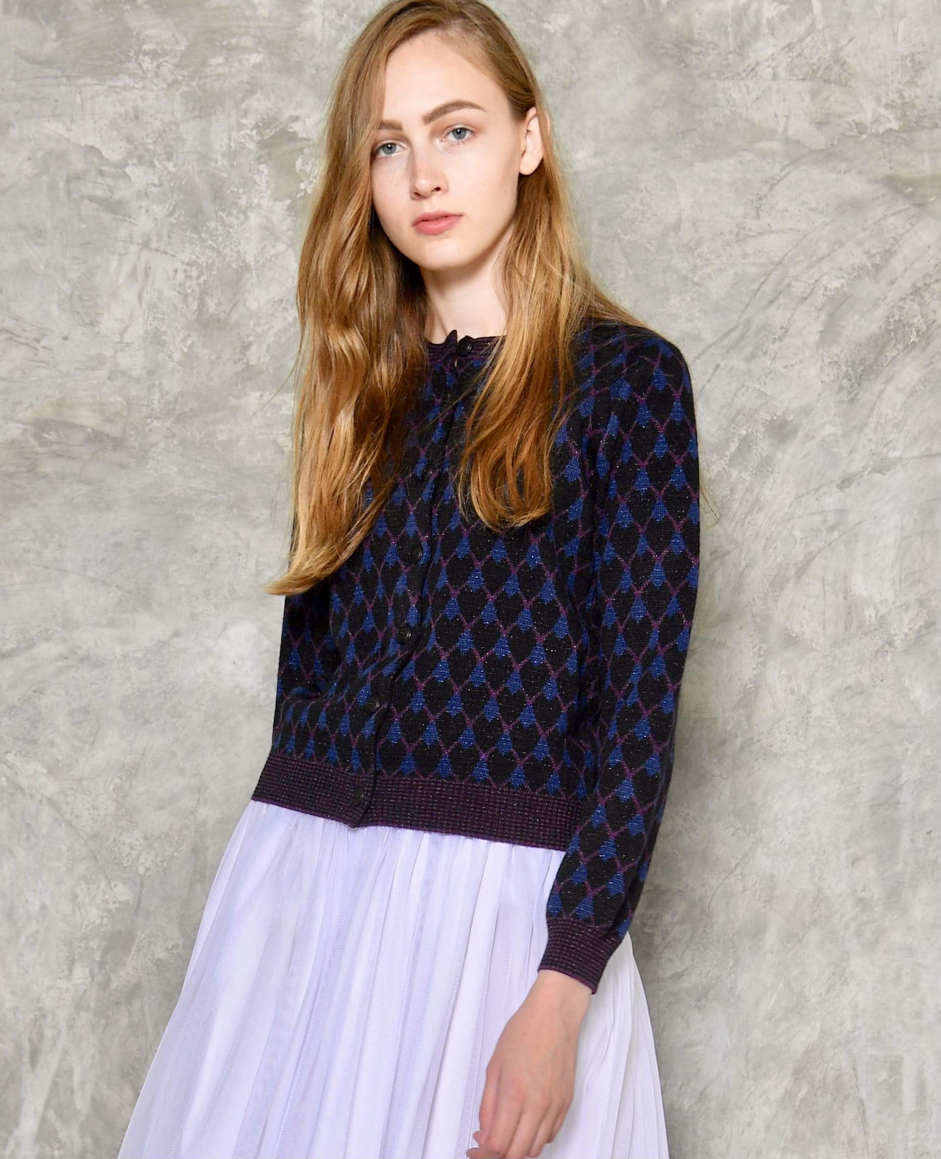 Rich texture lace knit cardigan with hand made glass buttons.