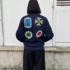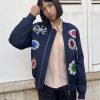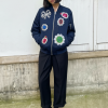 Aviator jacket that blends utility and glamour. Cut in a deep, navy blue, the silhouette takes cues from classic army aviators — slightly oversized, structured shoulders, and a clean bomber-style waistband — but reinterpreted as a light puffer for a richer, more contemporary volume.