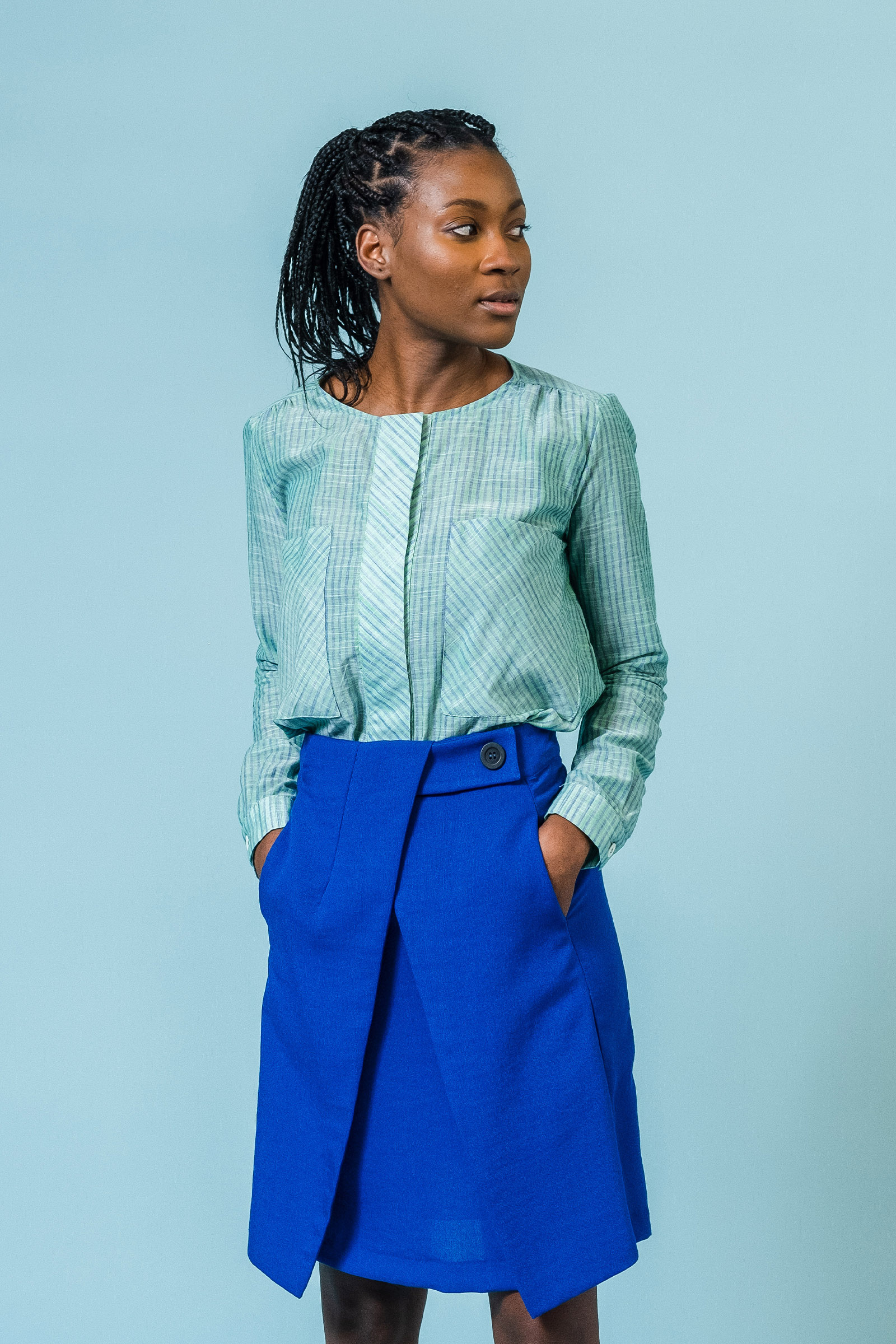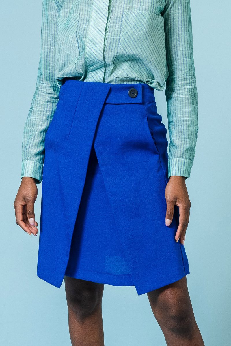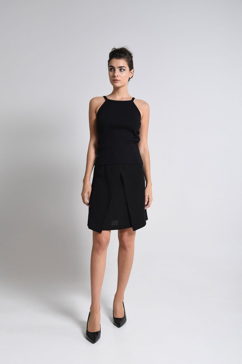 Jupe courte faux portefeuille avec poches et entièrement doublé.