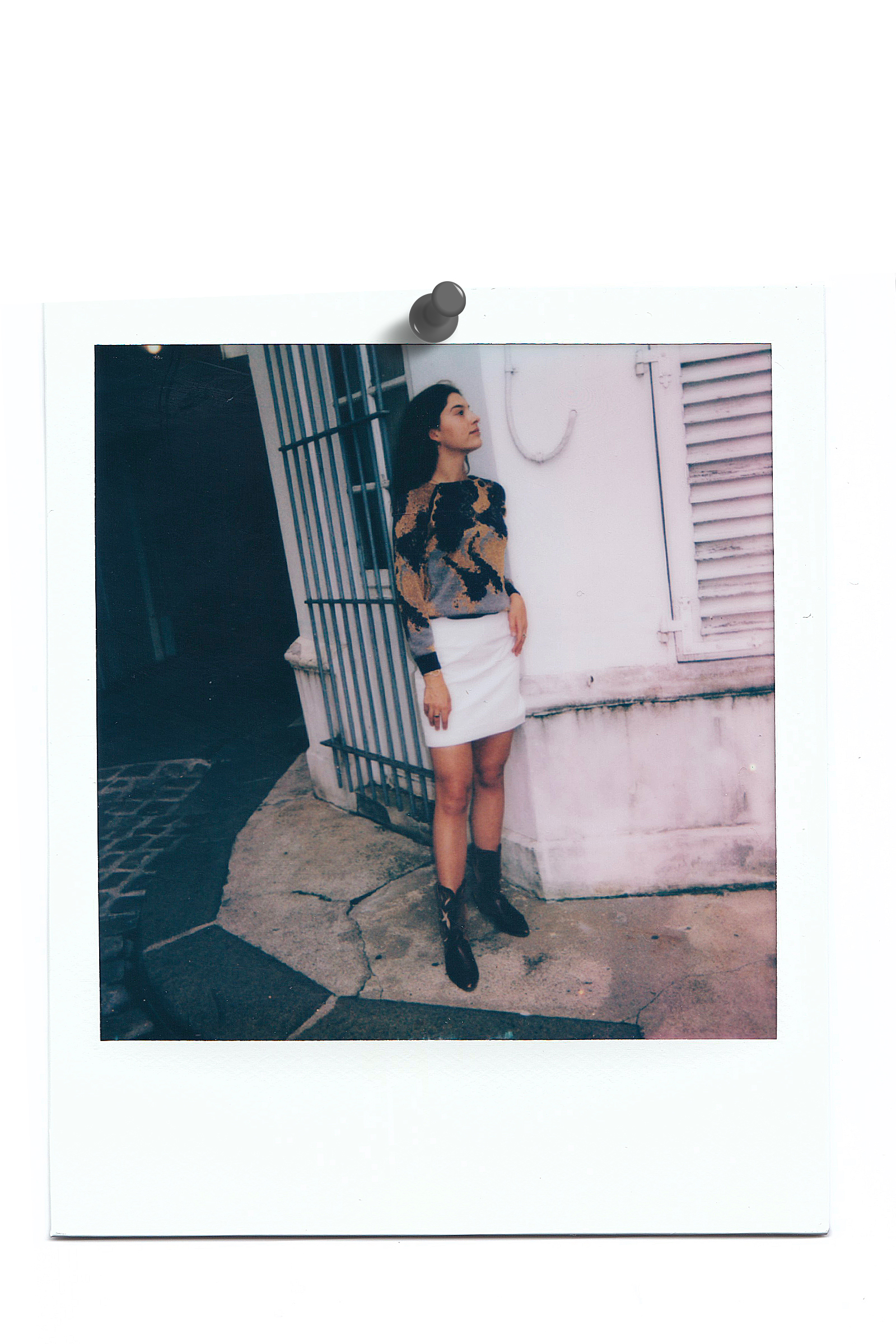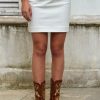 Jupe courte taille haute en laine coloris blanc. Entièrement doublé de satin.