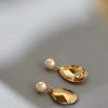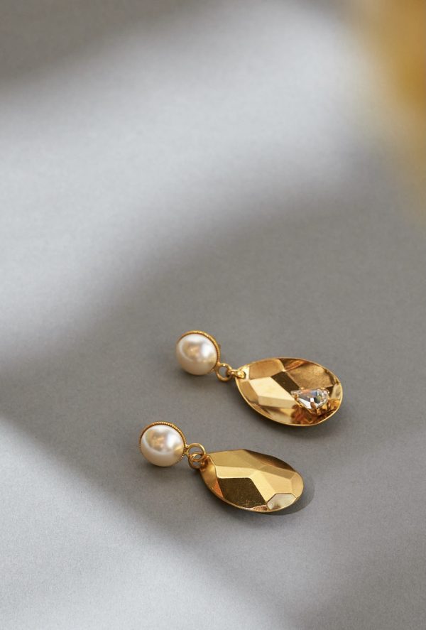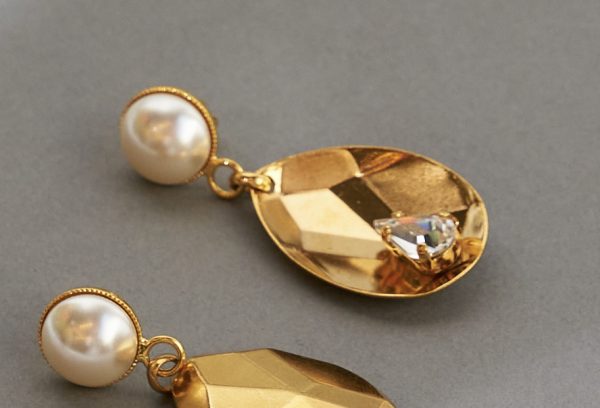 Gold, diamond and pearl tear drop earrings for pierced ears, crafted in Paris by Imuka Timuka.