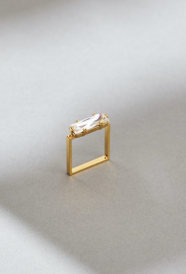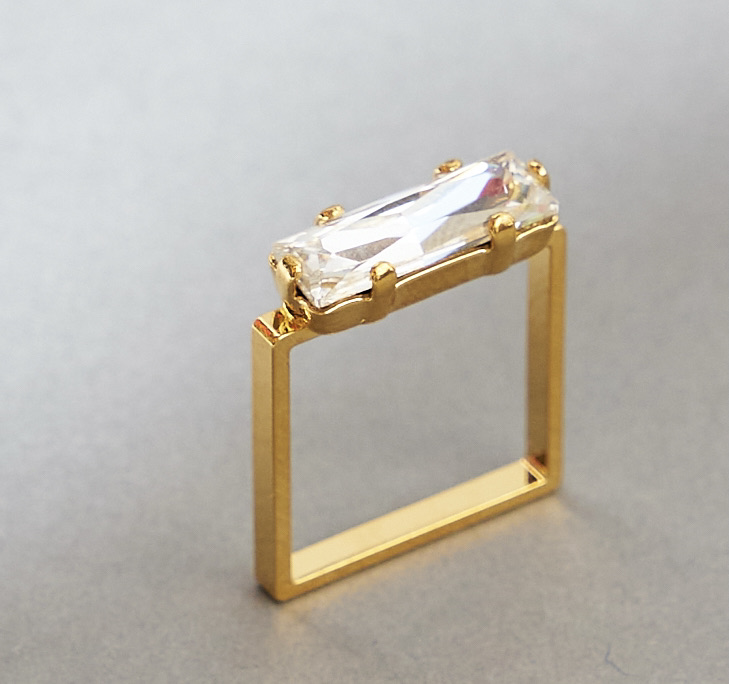 Gold square ring with rectangular crystal, crafted in Paris by Imuka Timuka.