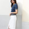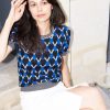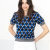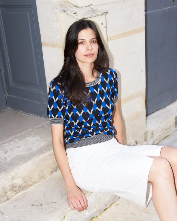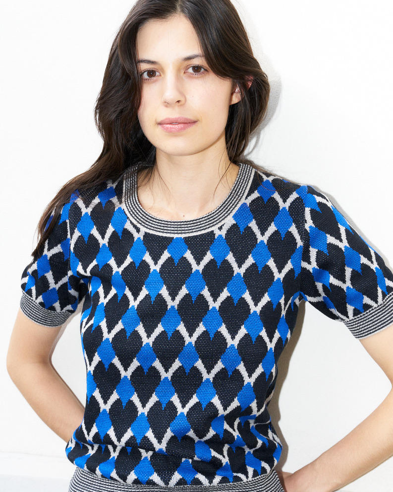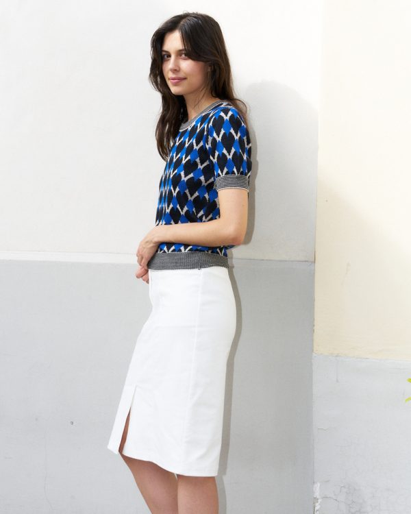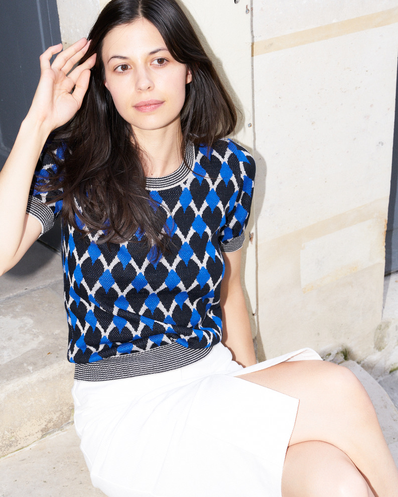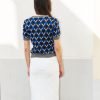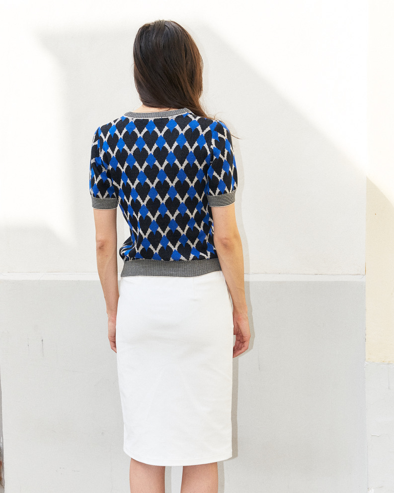 Meera-Graphic Jacquard Sweater With Short Sleeves-Blue/Cream/Black