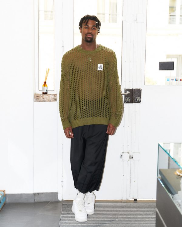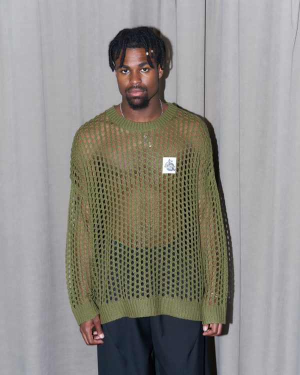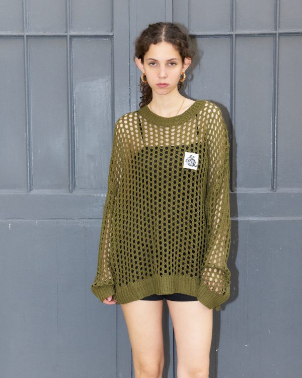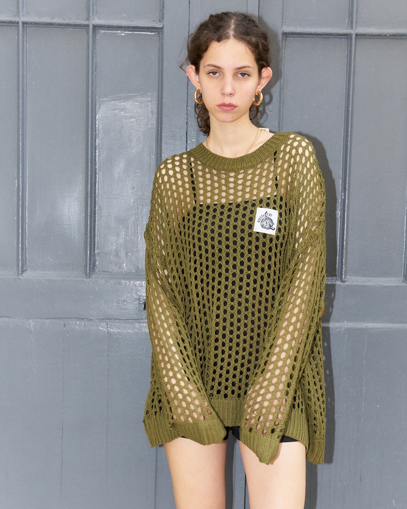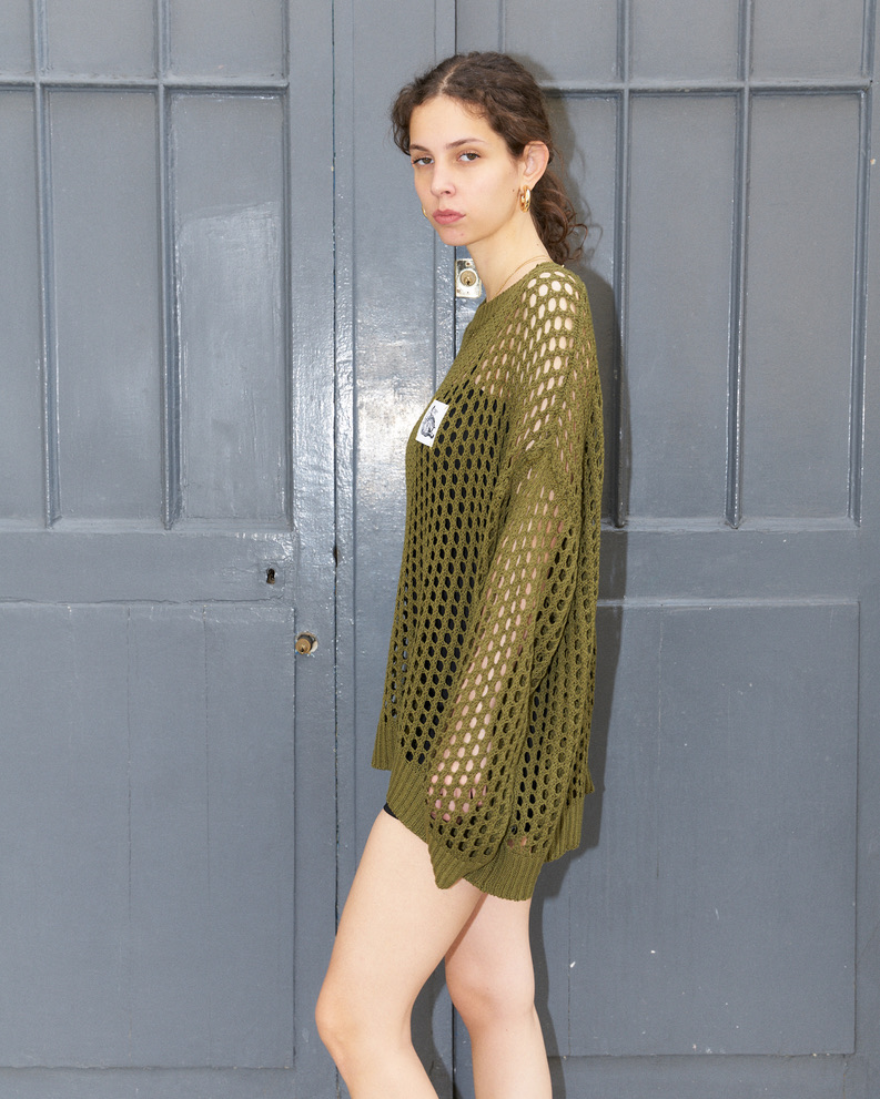 Super oversize heavy mesh knit sweater, this gender inclusive style is made out of luxurious heavy cotton/silk blend yarn, the label nasty Cat is hand stitched with gold thread.
