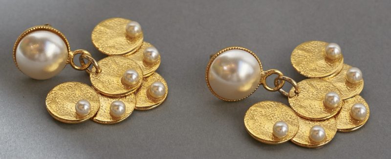 Gold and pearl sequin earrings for pierced ears, crafted in Paris by Imuka Timuka.