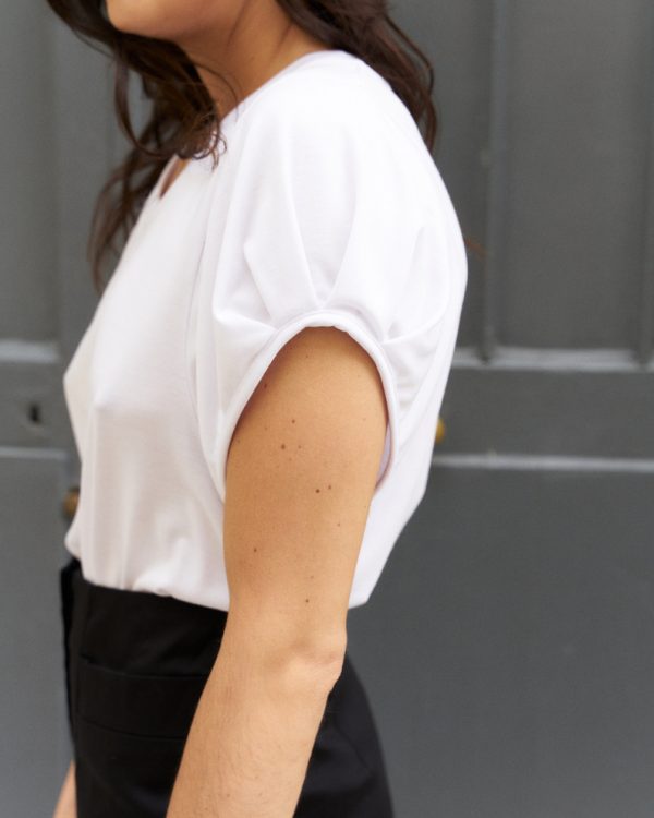 Olivia-Soft Satin Finish Jersey Top-White