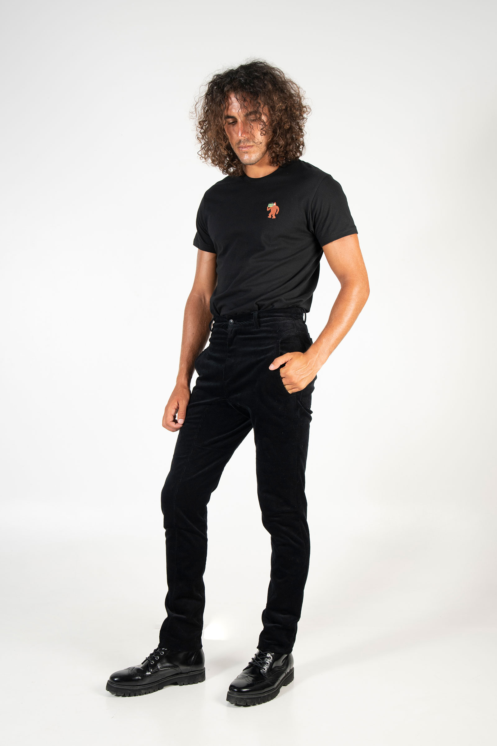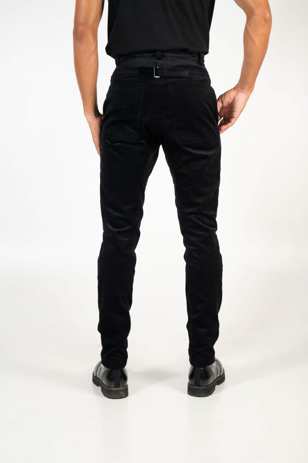 High waist work wear pants with adjustable backstrap, two front pockets and two patch back pockets.