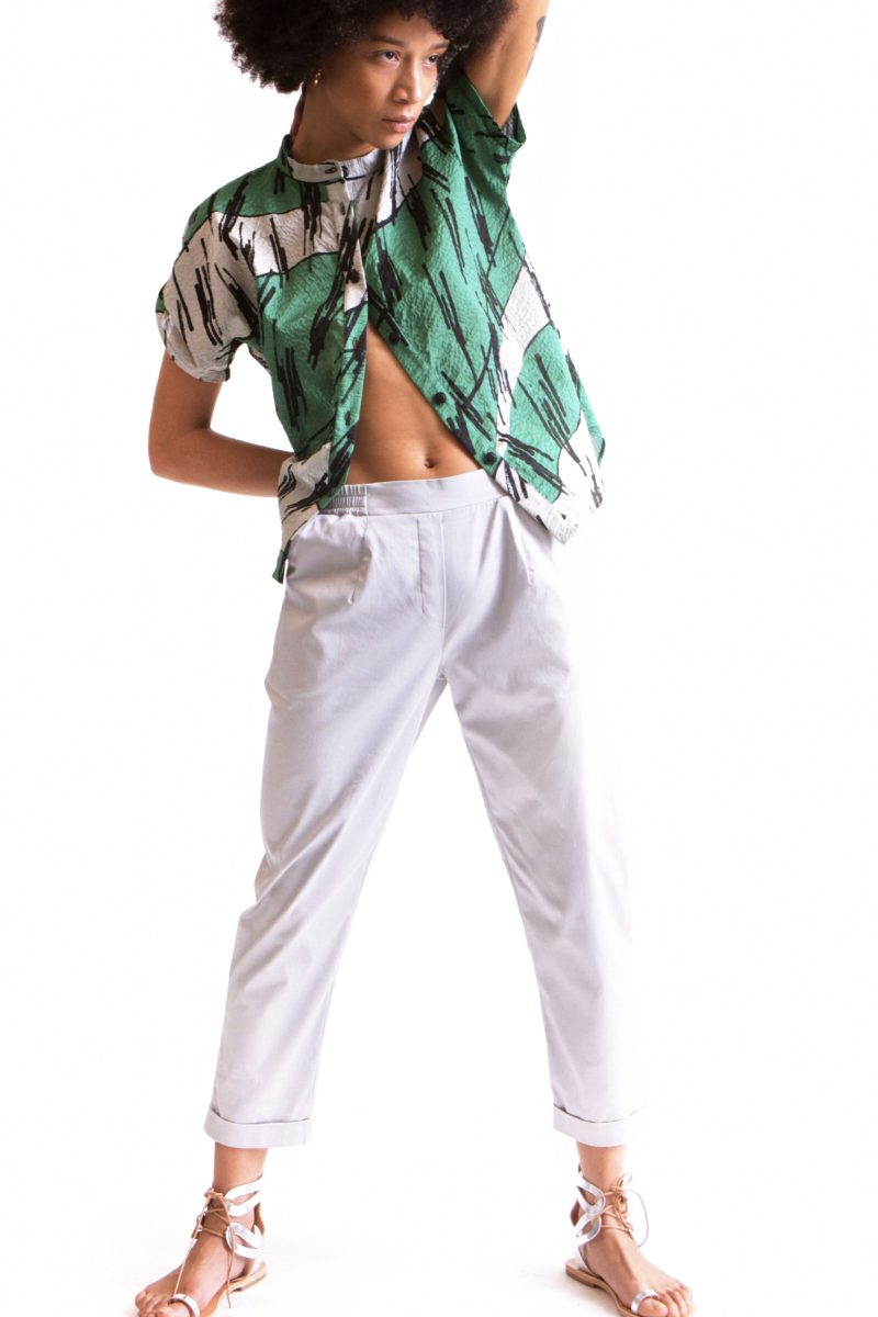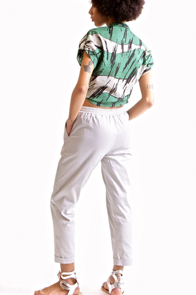 Pantalon jambes large couleur caramel en coton stretch. Il possède deux poches latéral et une poche passepoilée au dos.