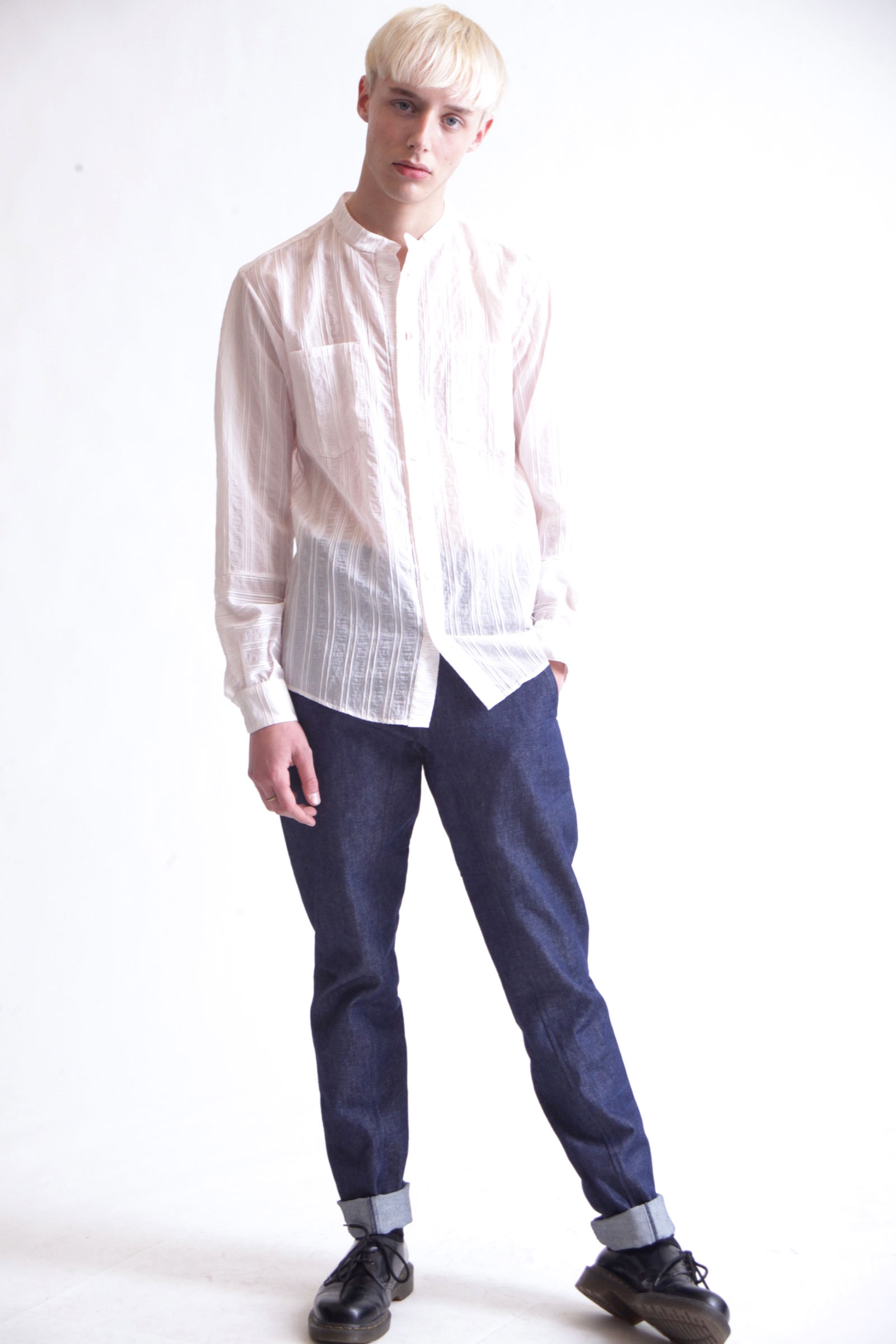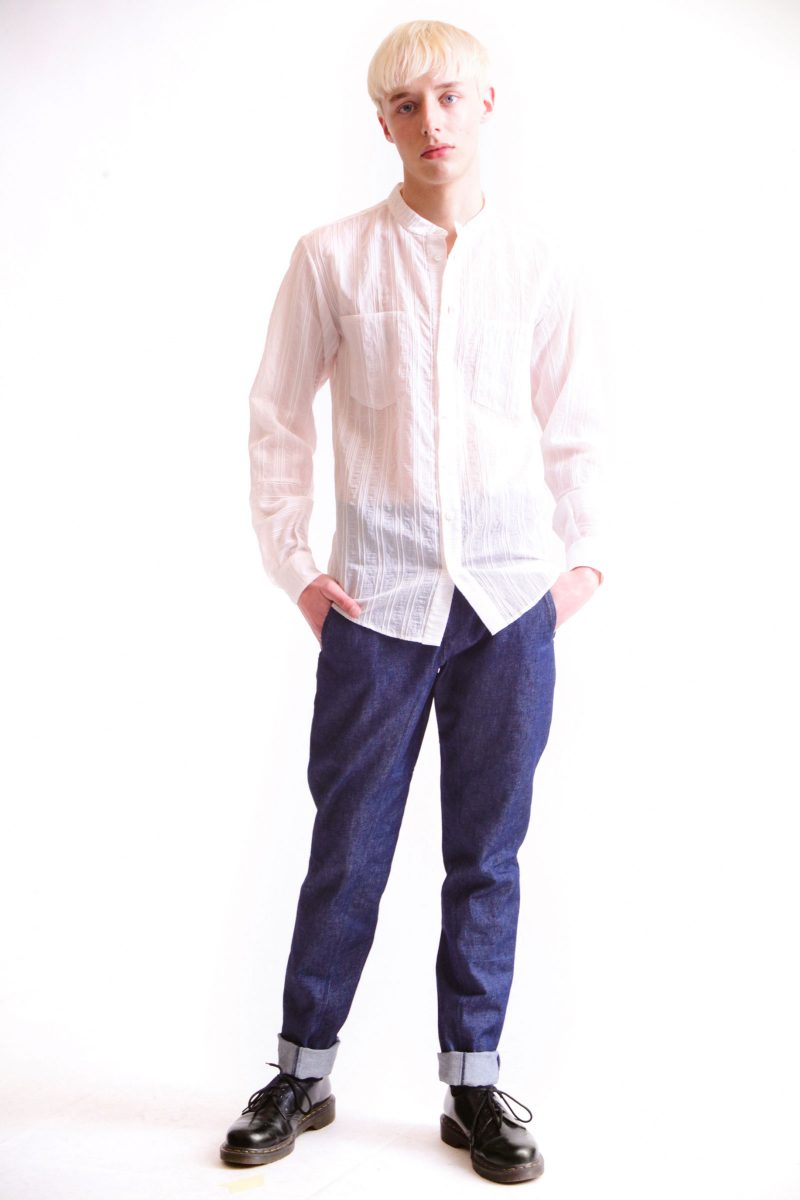 Pantalon en jean brut avec deux poches latérales. Il possède deux poches plaquées et une bride ajustable à l’arrière.