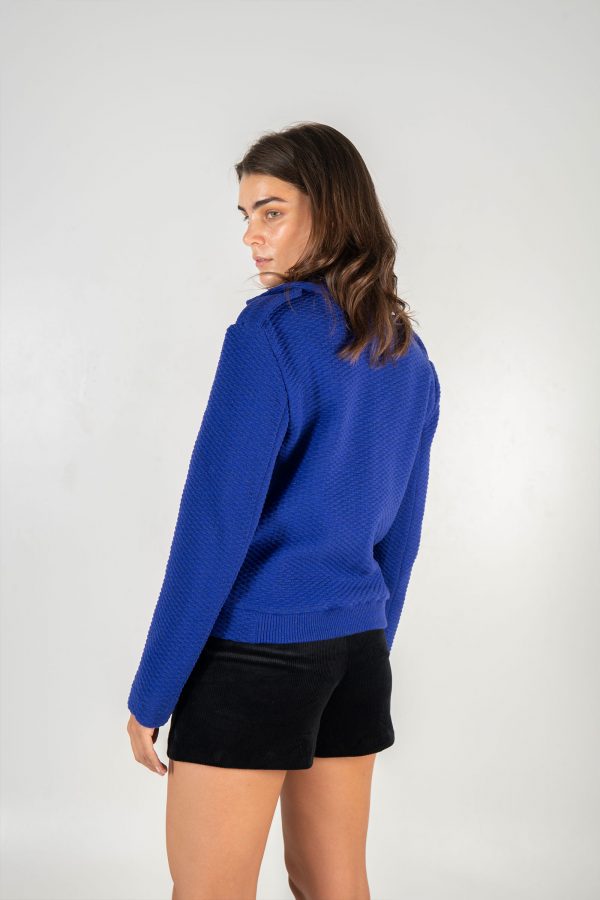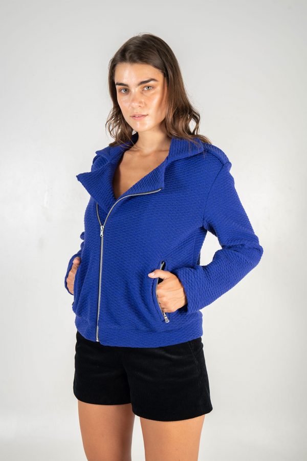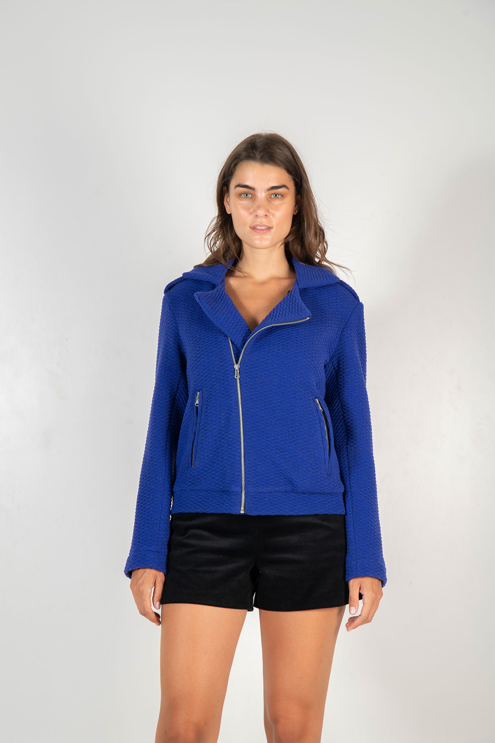 Textured knit biker jacket with pockets and Lurex details.Metallic zip closure. Fully lined with jersey.