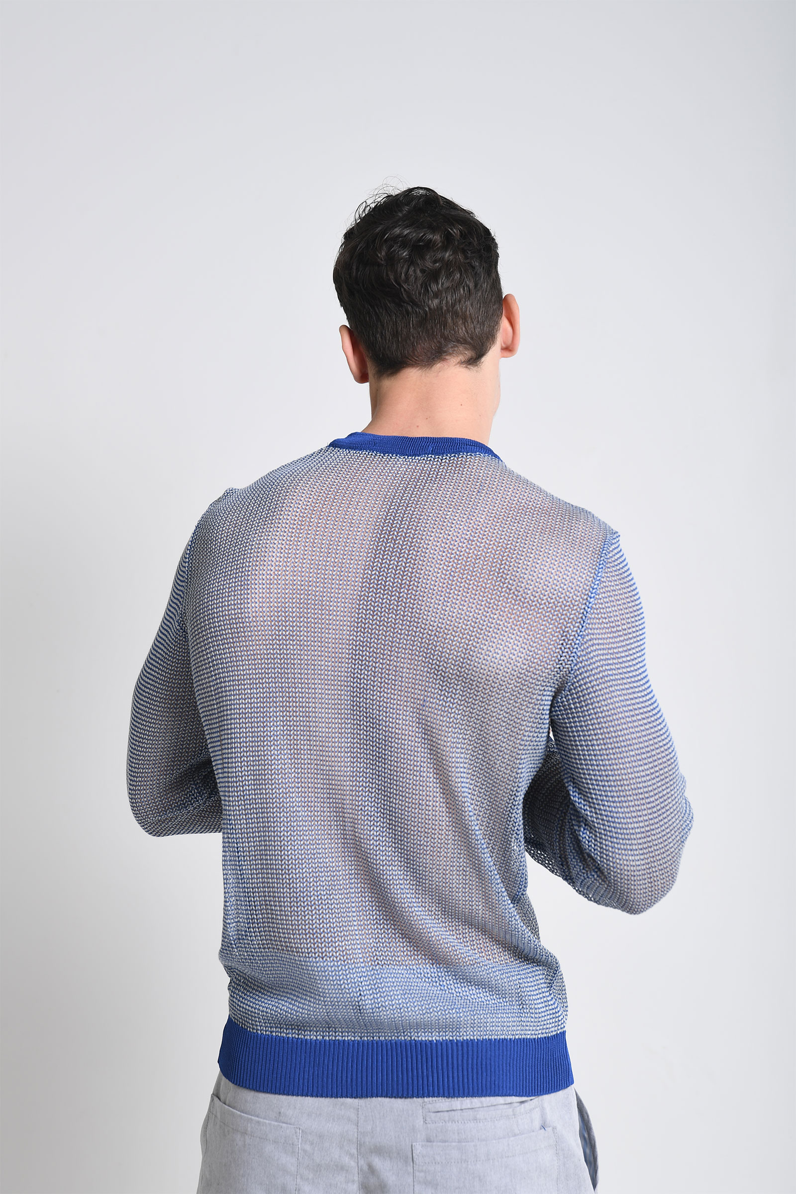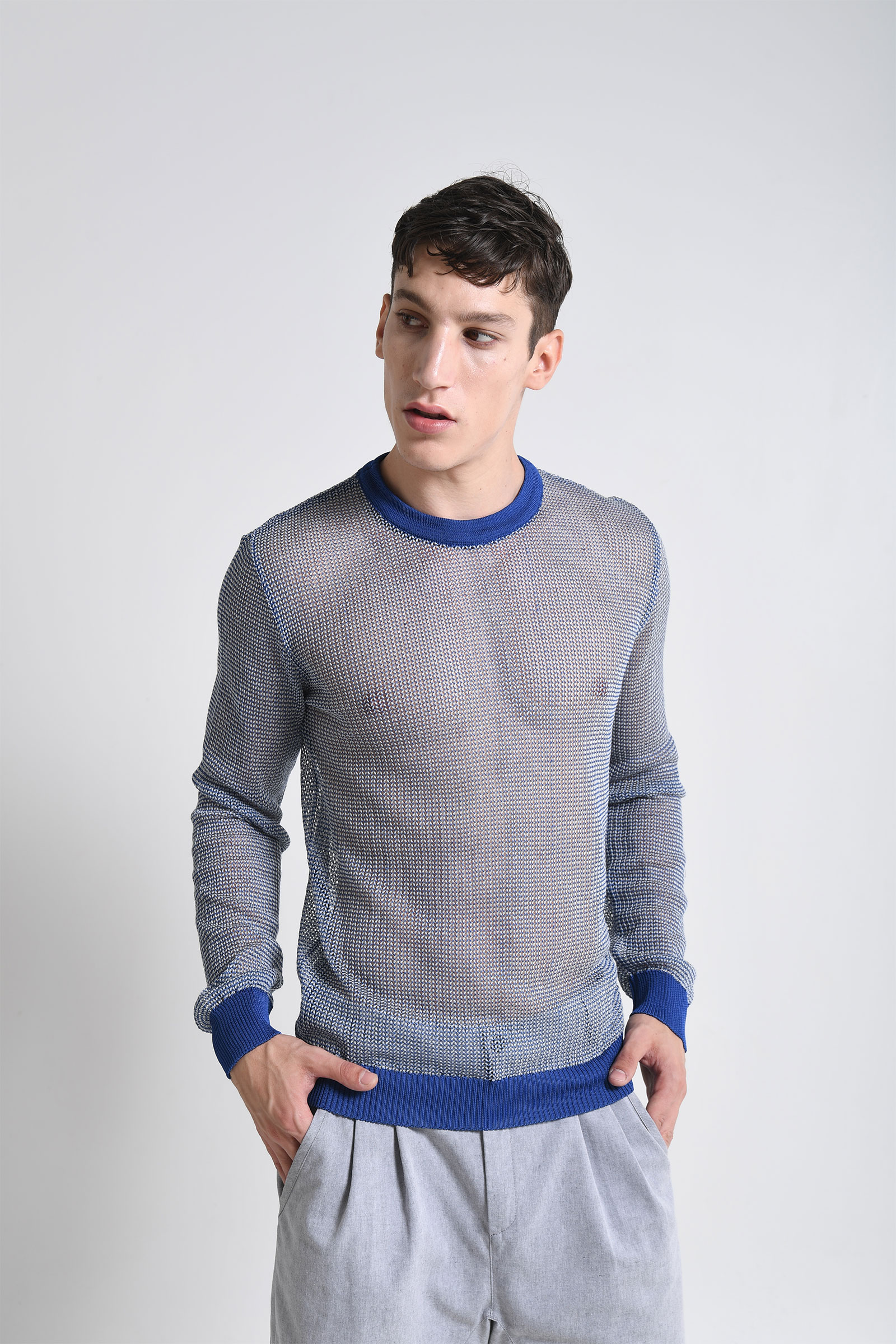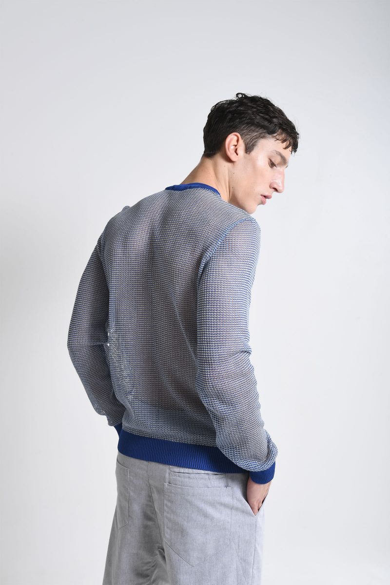 Pull transparent à col rond et manches longues.