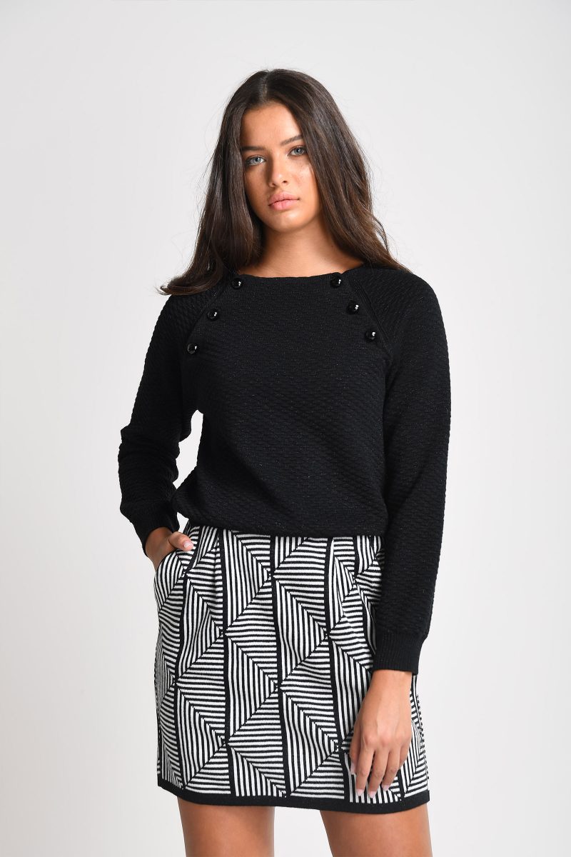 Pull Malka en maille texturé avec détail lamé et ouvertures boutonnée au niveau des épaules.