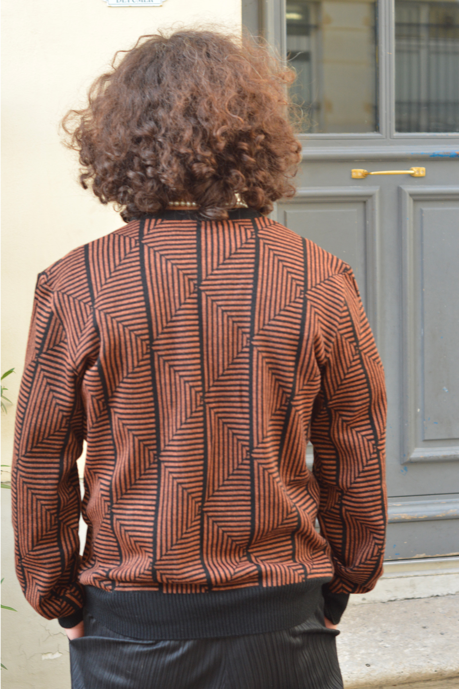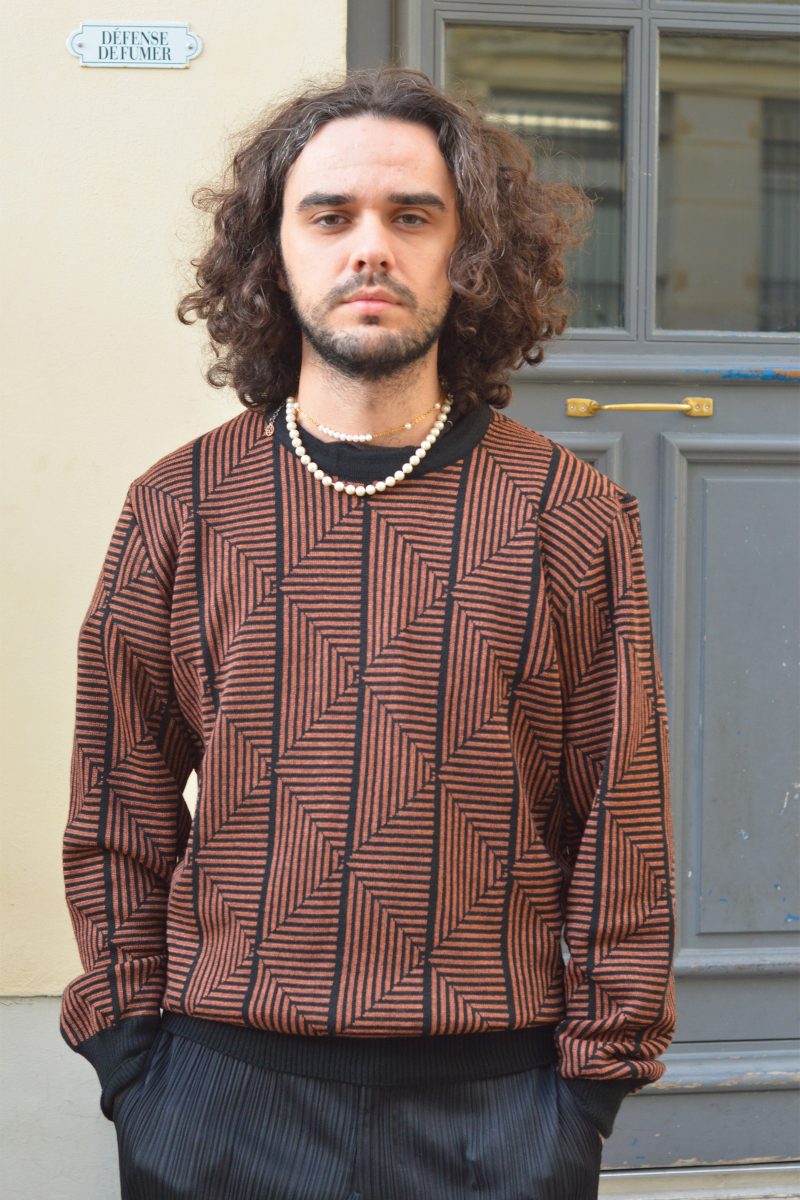 Pull Owen col rond à motifs géométriques confectionné en mélange laine et coton. Il arbore une coupe classique droite et des bords-côtes.