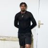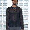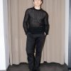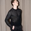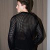 Black mesh knit top with side slits and long sleeves