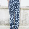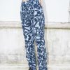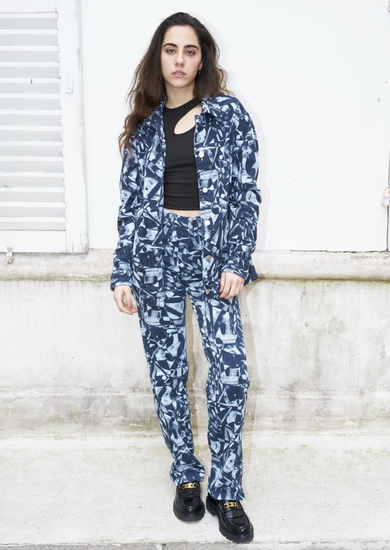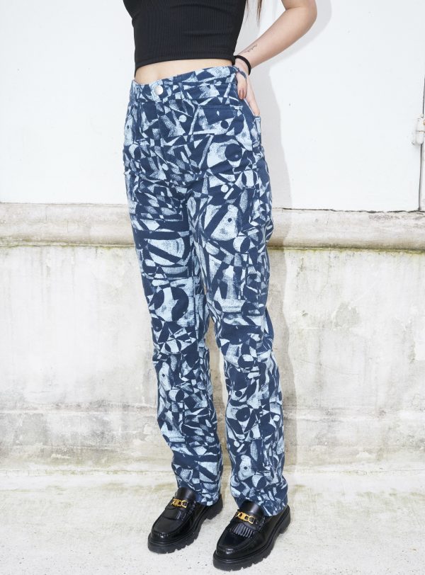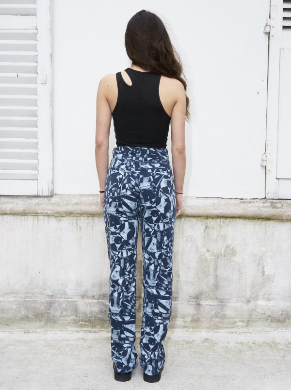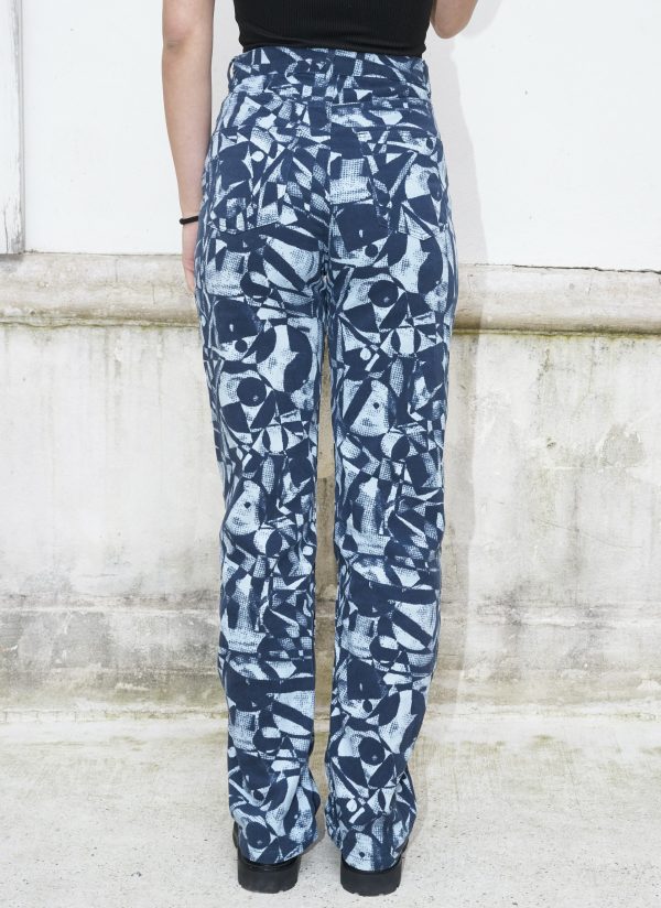 Straight leg high waist jeans printed with an all over abstract pattern. The pants are made from organic cotton and they are piece dyed.