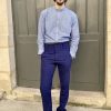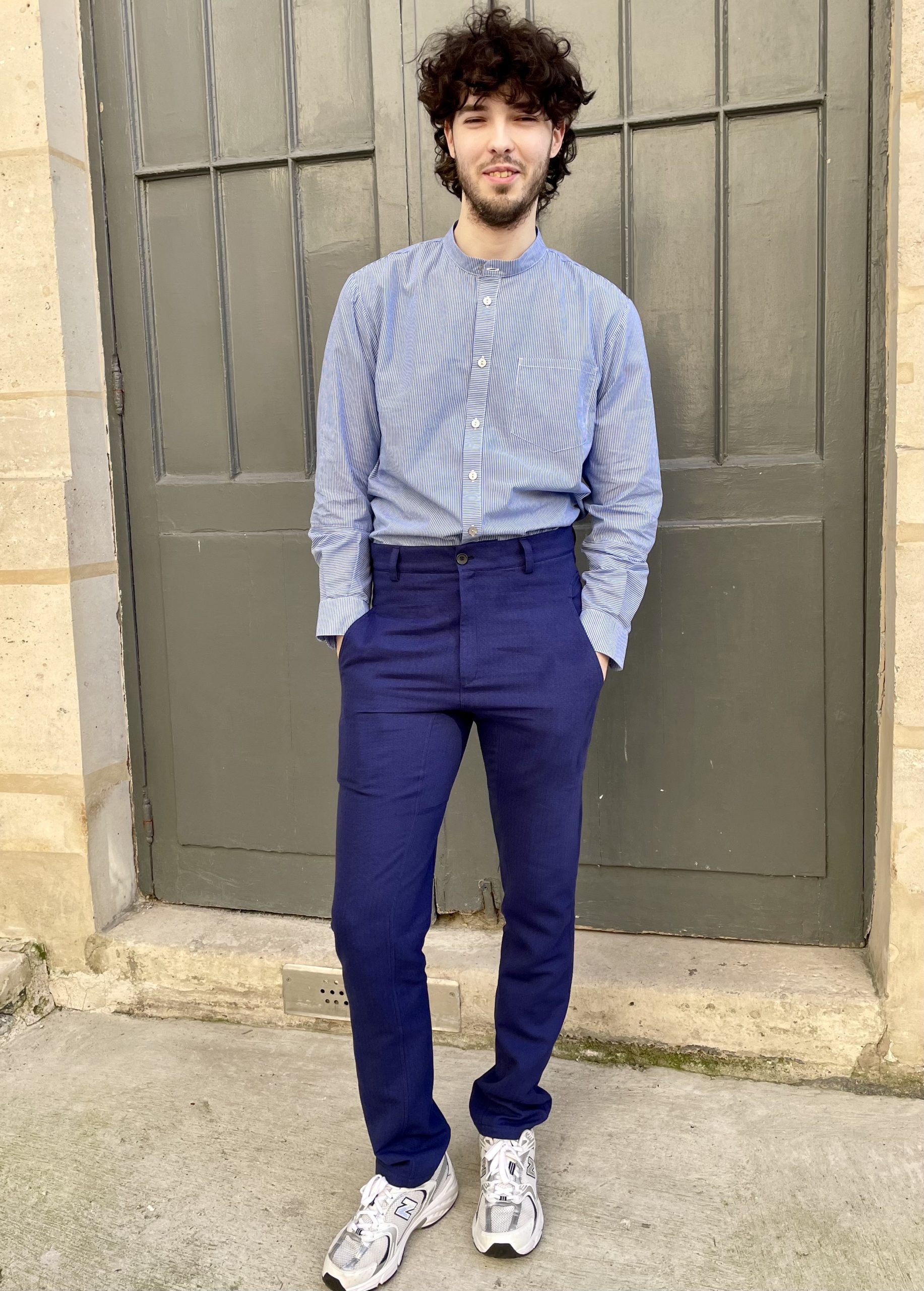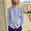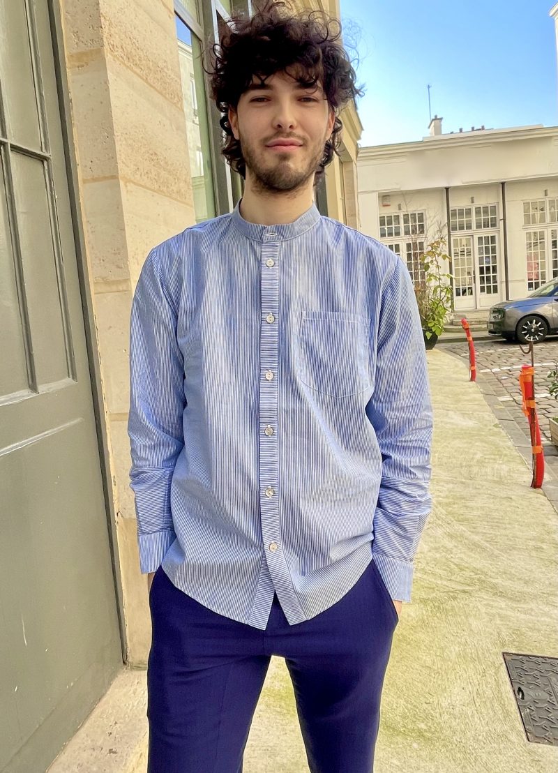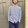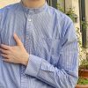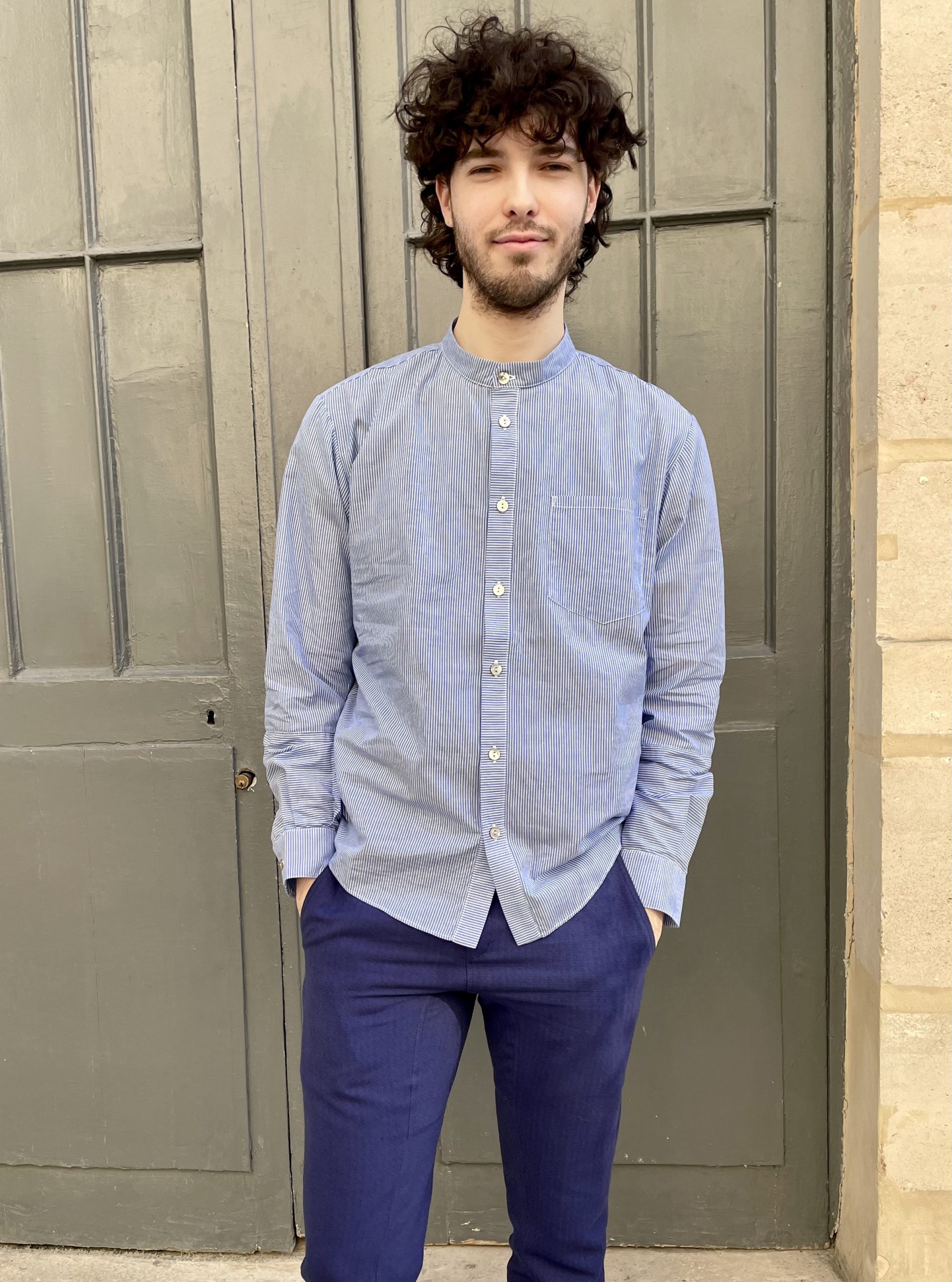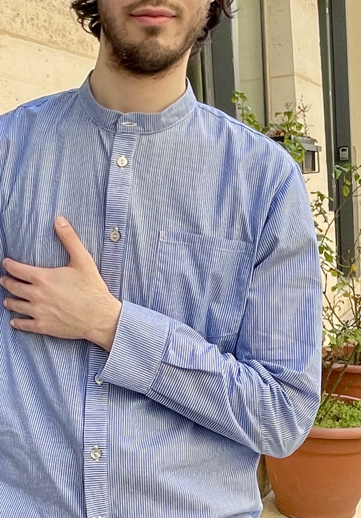 Fine striped cotton poplin shirt with mismatched cuff stripe details.