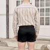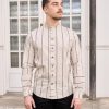 Remi – Mandarin Collar Stripe Poplin Shirt – Beige, white, navy