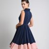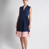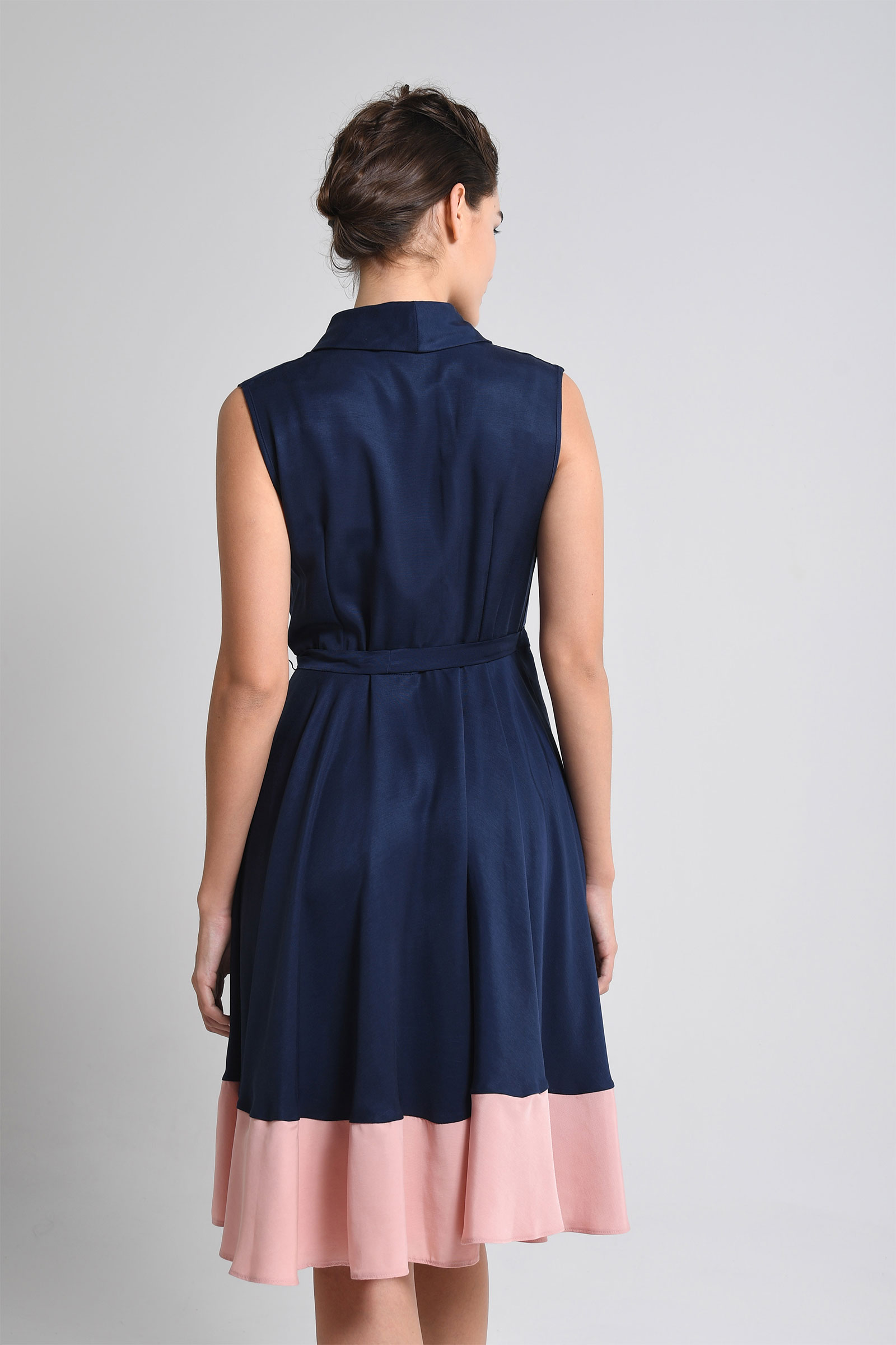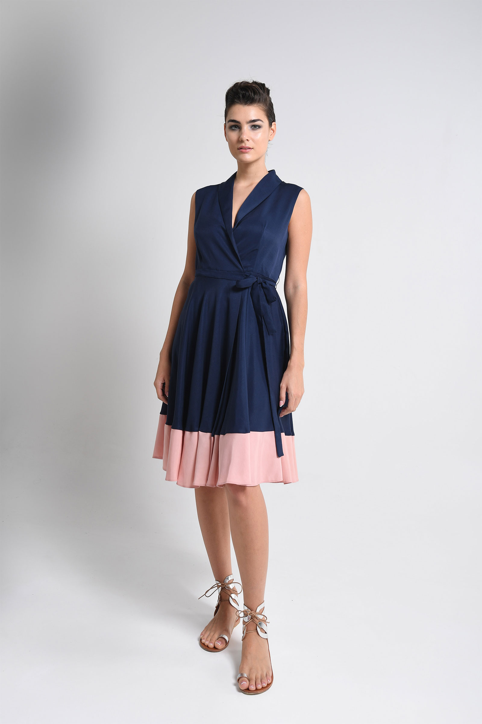 Robe portefeuille avec  bord côte couleur contraste et ceinture dans la même matière.