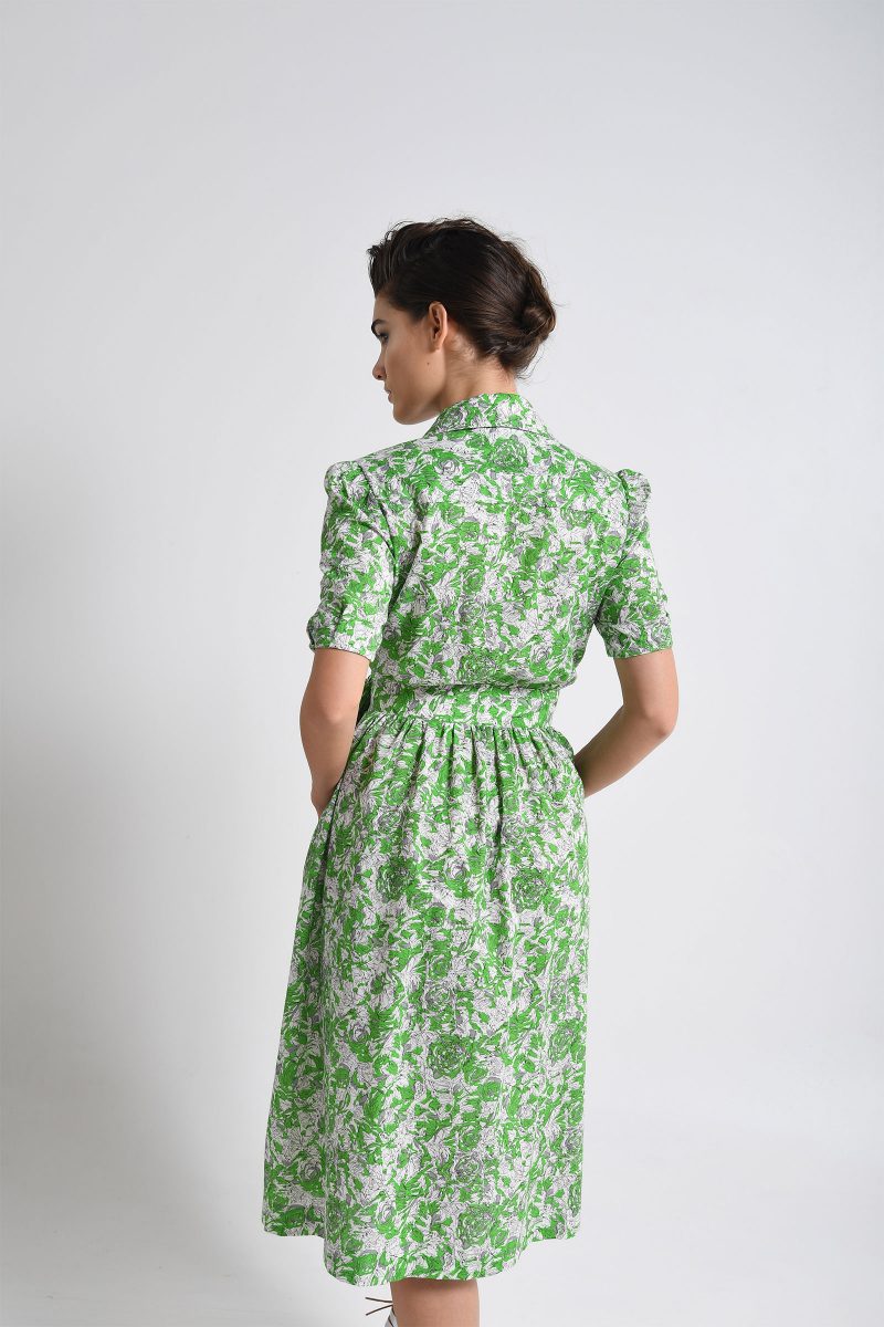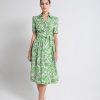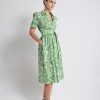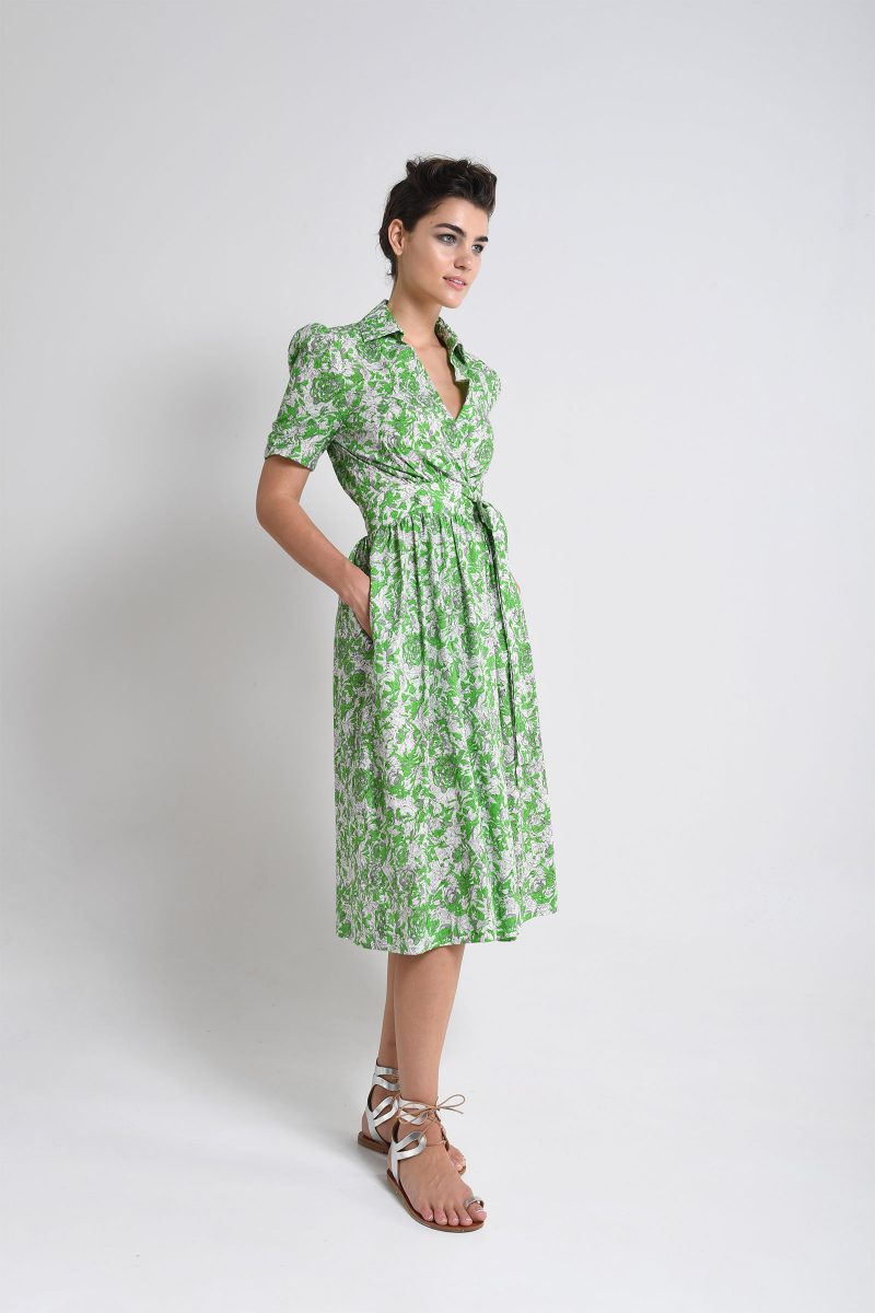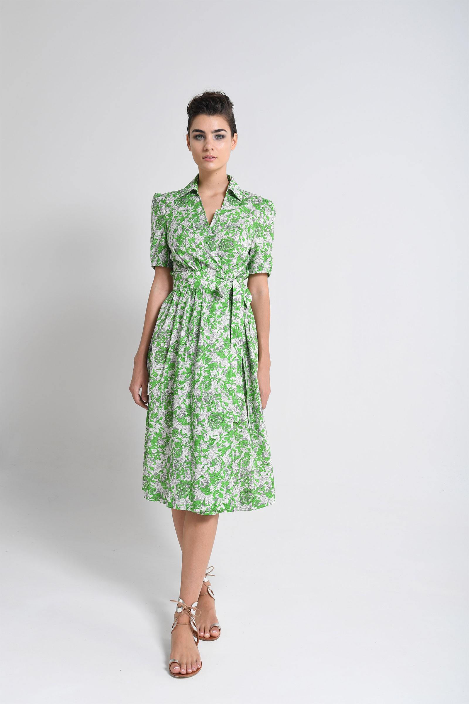 Robe portefeuille a fleurs avec poches et ceinture dans la même matière.